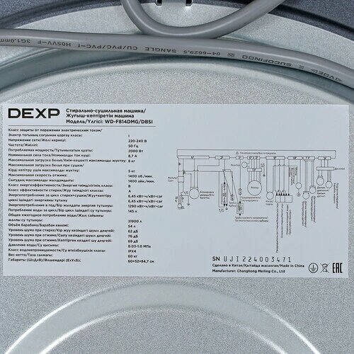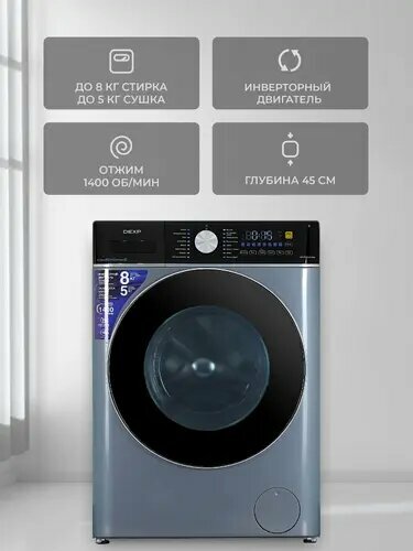 Стирально-сушильная машина DEXP "WD-F814DMG", синий, 8 кг, сушка интересное: