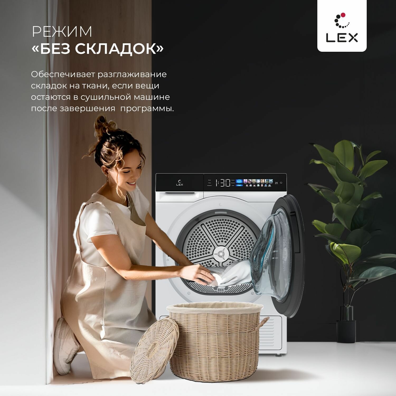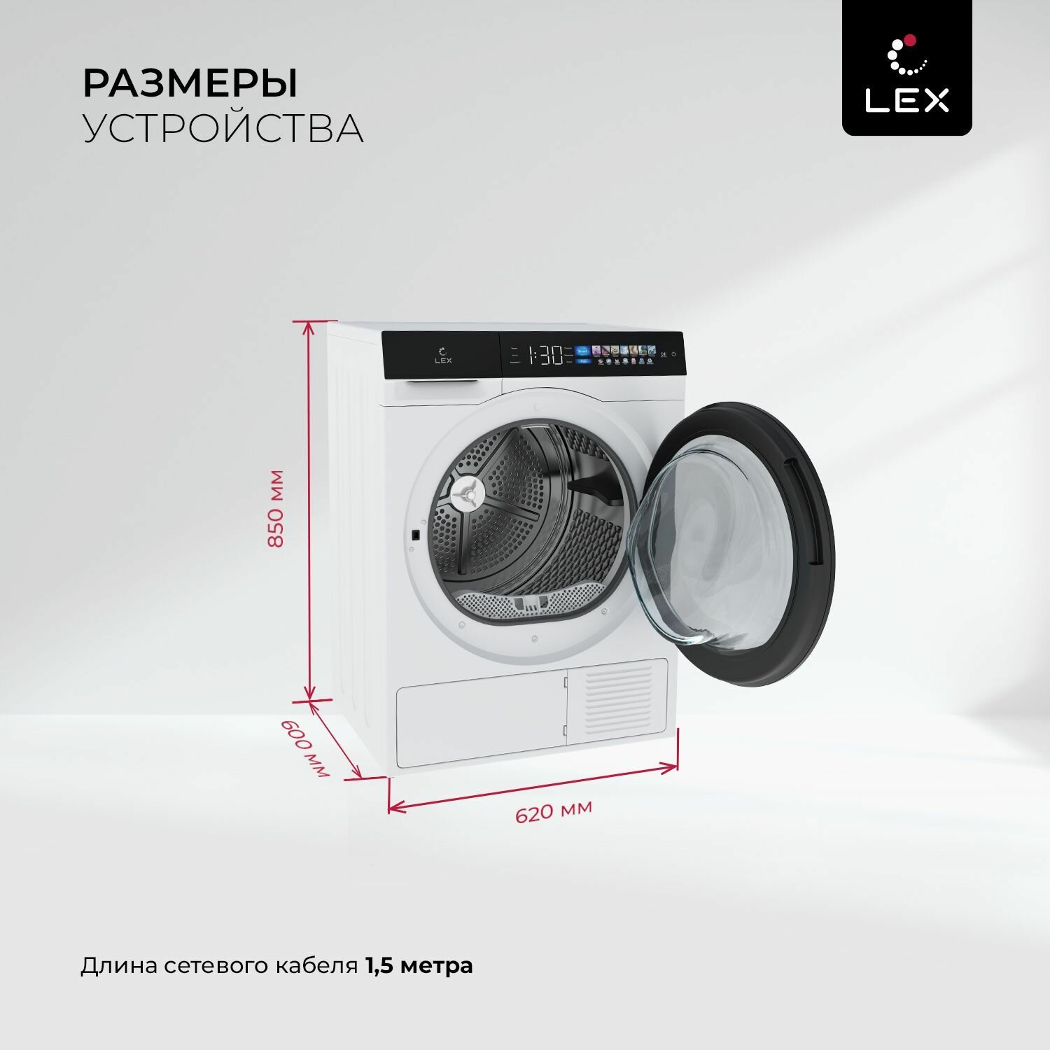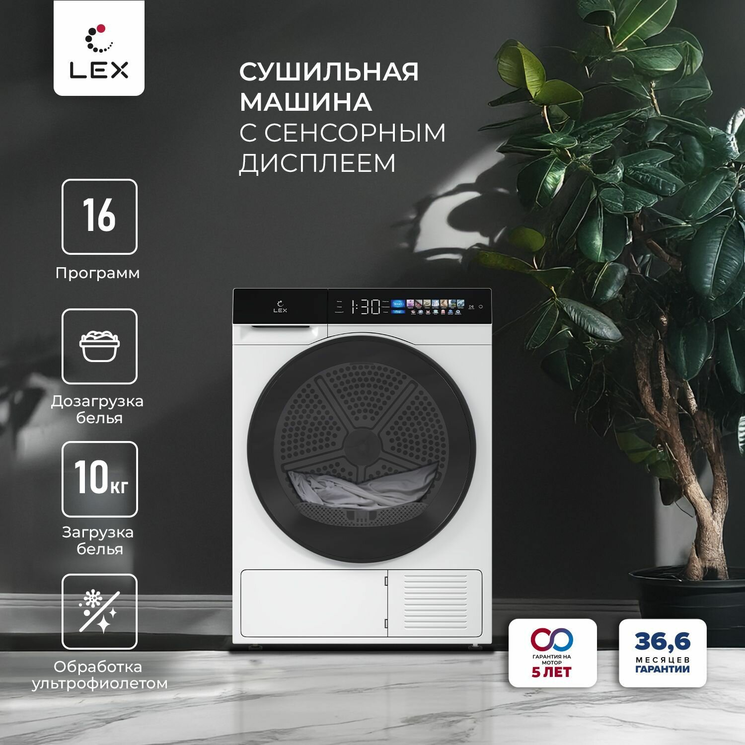 Сушильная машина Lex LDM12WBlThD, белый, 10 кг, 16 программ, класс A++, таймер, дозагрузка белья интересное: