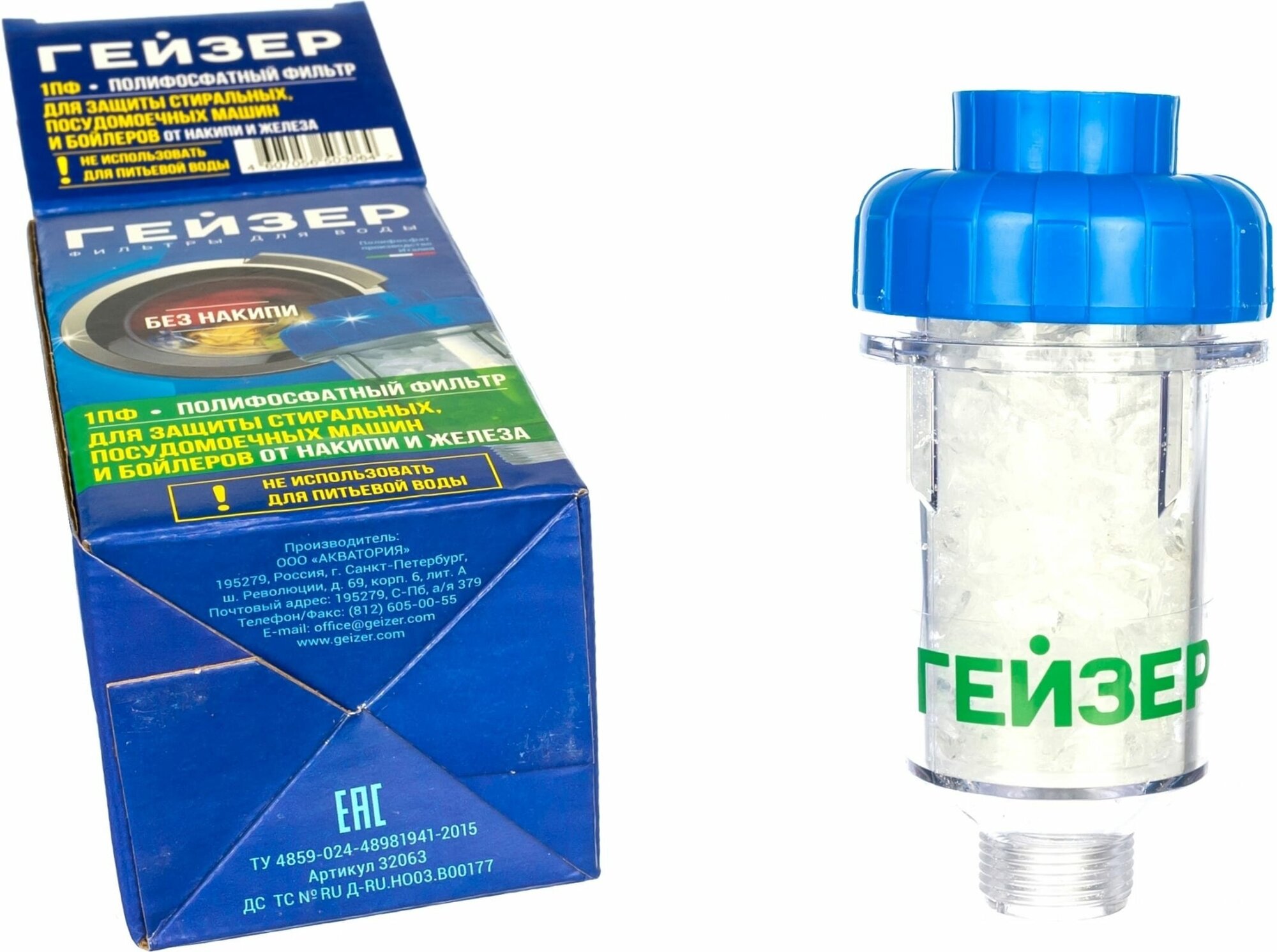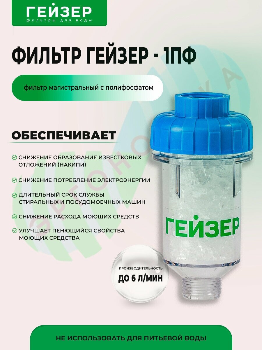 Фильтр Гейзер "1ПФ", магистральный, для стиральной машины, умягчение, цвет голубой интересное:
