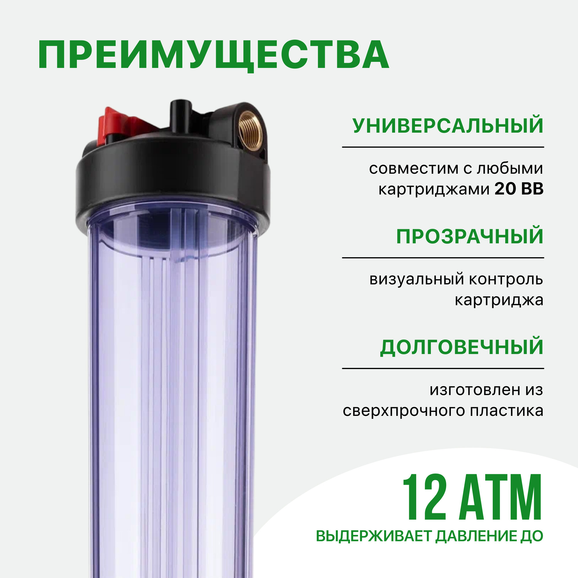 Корпус магистрального фильтра Гейзер С24 20ВВ 1", для холодной воды, защита сантехники, бытовых приборов и систем, 50782 интересное: