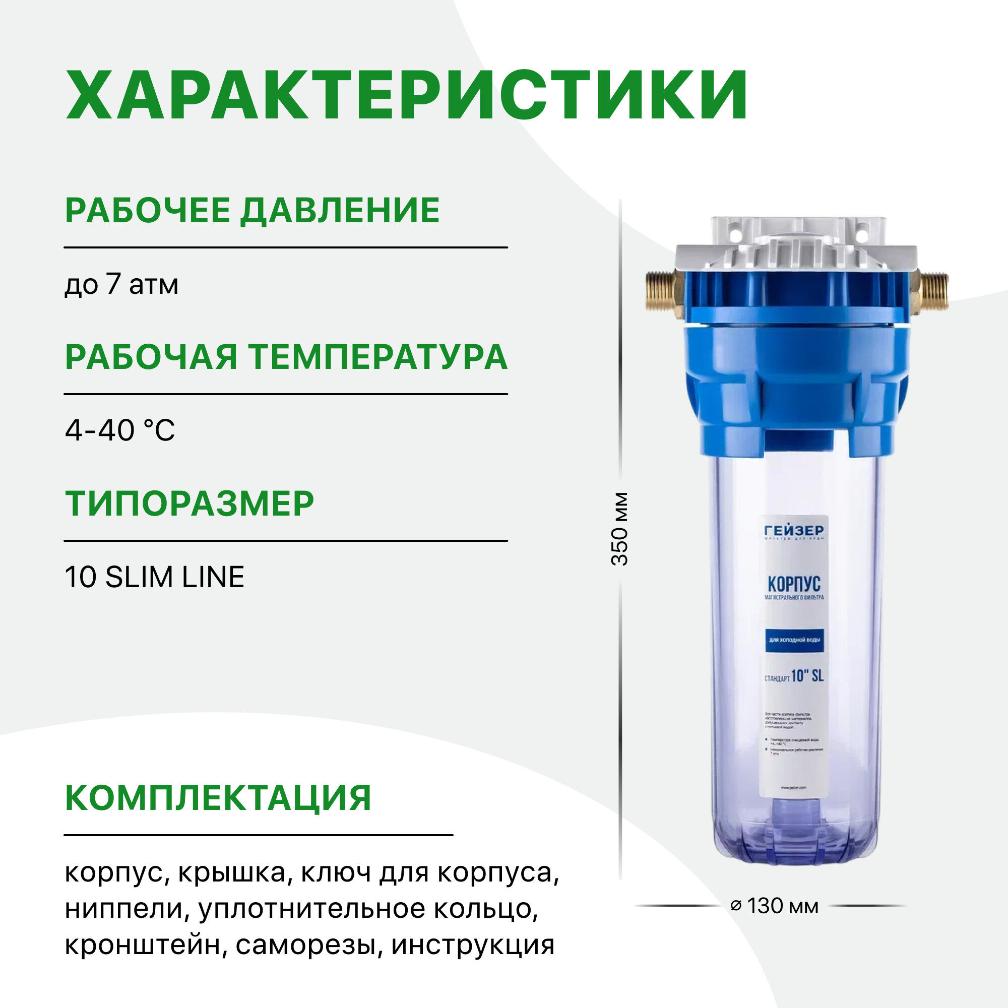 Корпус магистрального фильтра Гейзер 10SL 1/2", для холодной воды, защита сантехники, бытовых приборов, 50531 интересное: