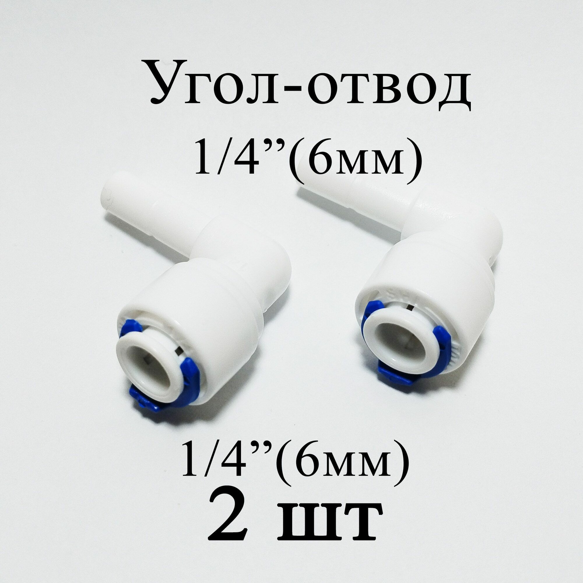 Купить Переходник фитинг угловой стержень 1/4"-трубка 1/4" 2шт для фильтра воды для всех систем фильтрации