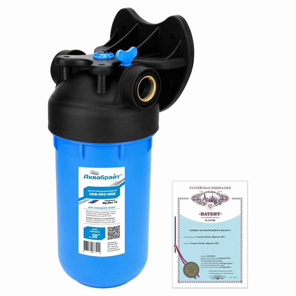 Магистральный фильтр для воды Аквабрайт АБФ-ПРО-10ББ Big Blue 10" с кронштейном интересное: