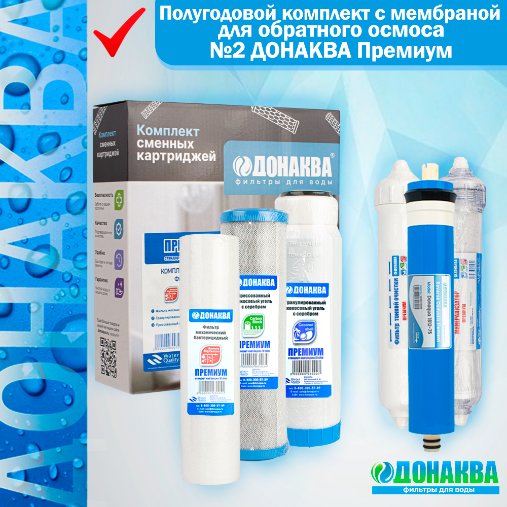 Полугодовой комплект с мембраной для обратного осмоса №2 донаква Премиум интересное: