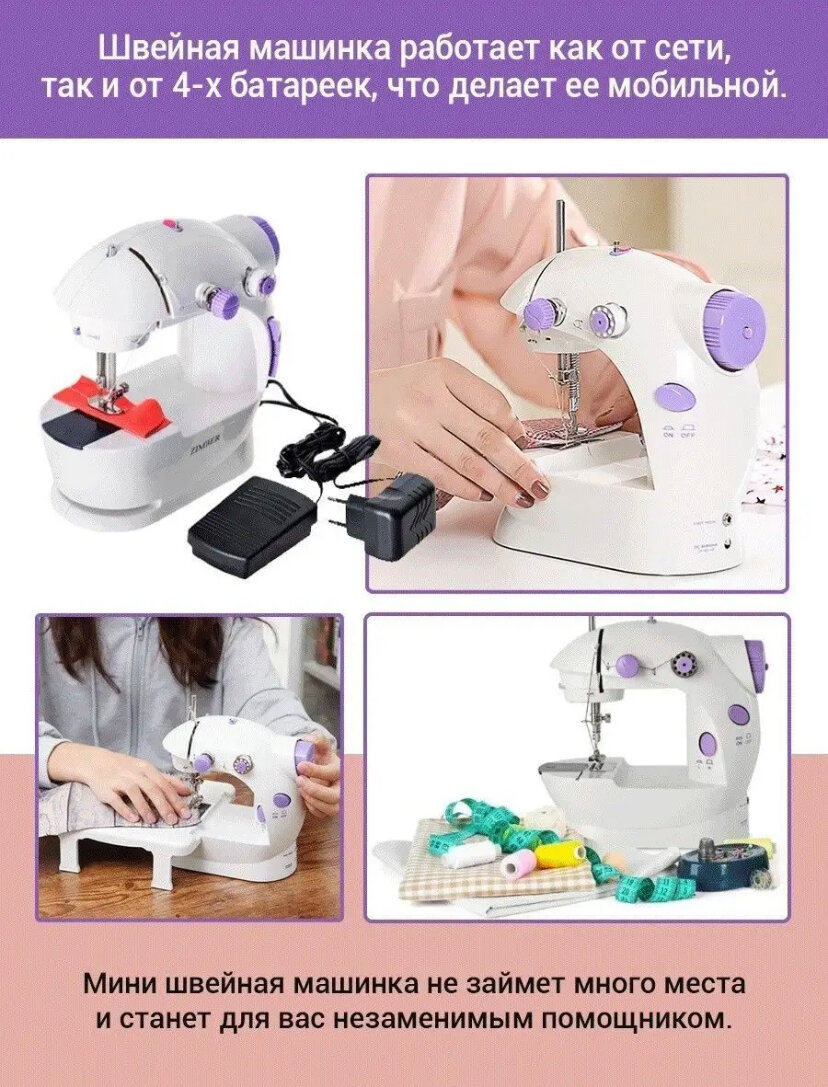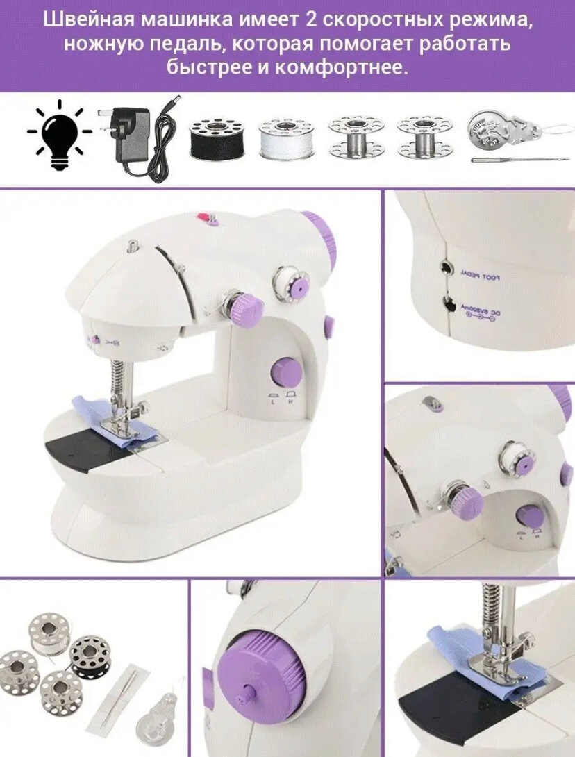Портативная швейная мини машинка с подсветкой и педалью, Электрическая швейная машинка sm-202a интересное: