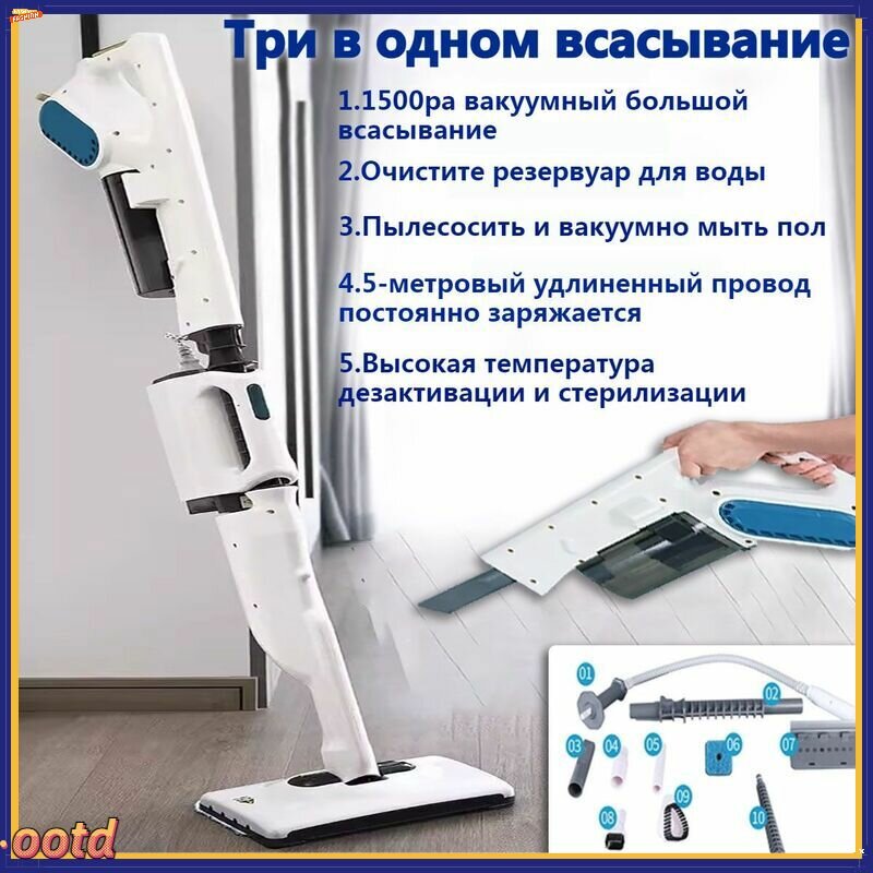 Паровая швабра , С быстрым нагревом, (6 в 1) 1600 Вт 1600 Вт, насадки - 6 шт интересное: