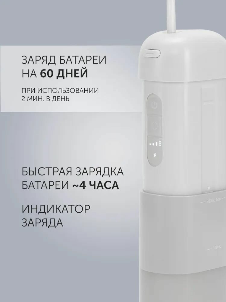 Портативный ирригатор для полости рта, 4 насадки, резервуар 200 мл, бирюзовый/оранжевый