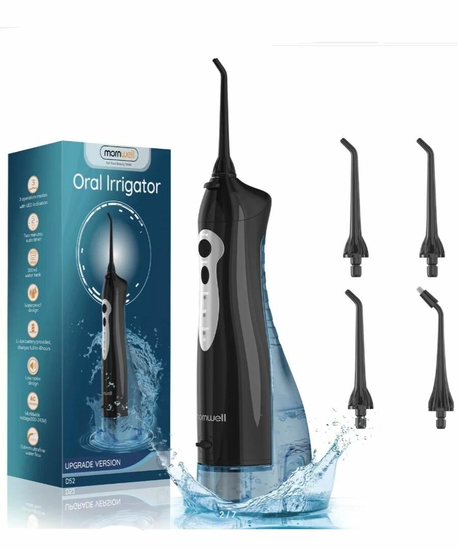 Портативный пероральный ирригатор Mornwell D52 Pro, 300мл, 4 сопла, usb зарядка, черный интересное: