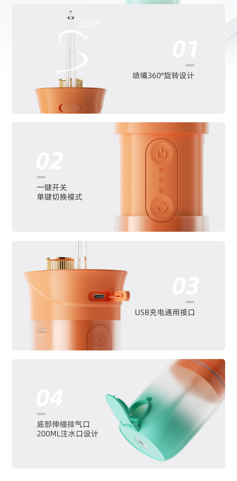 Портативный ирригатор для полости рта, 4 насадки, резервуар 200 мл, бирюзовый/оранжевый