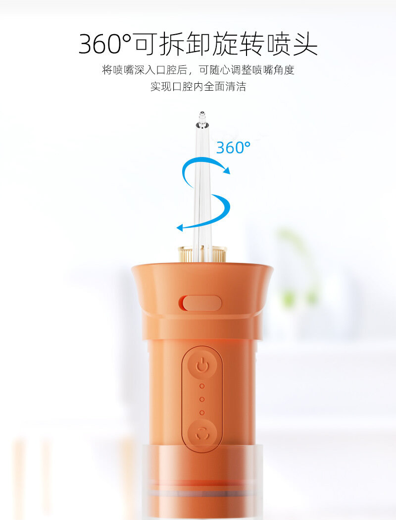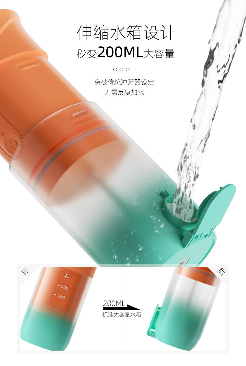 Портативный ирригатор для полости рта, 4 насадки, резервуар 200 мл, бирюзовый/оранжевый