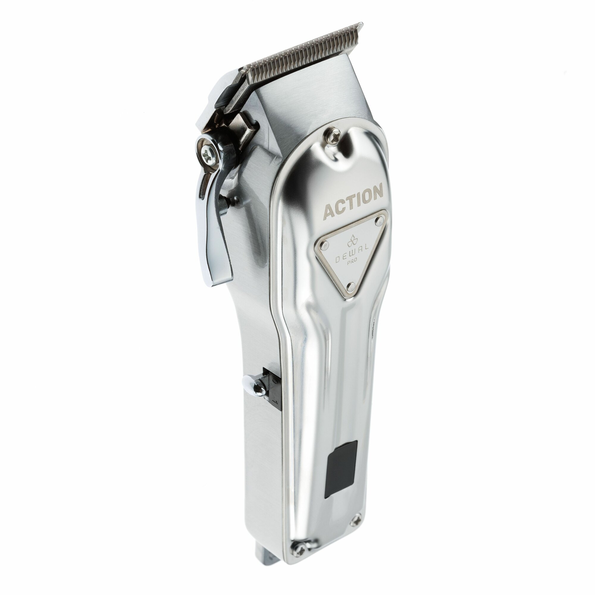 Купить Машинка для стрижки волос профессиональная DEWAL Pro ACTION, аккумуляторная/сетевая, нож 45 мм, 4 насадки, серебристая