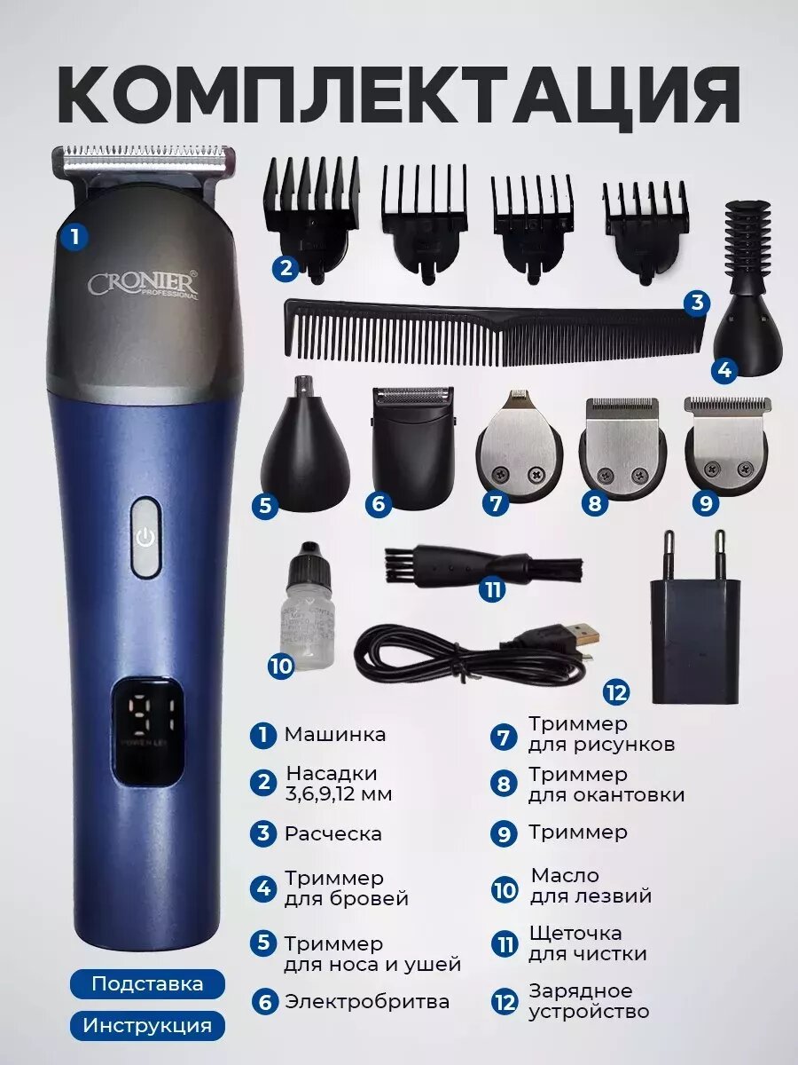 Триммер для стрижки и бритья с дисплеем CR-887 интересное: