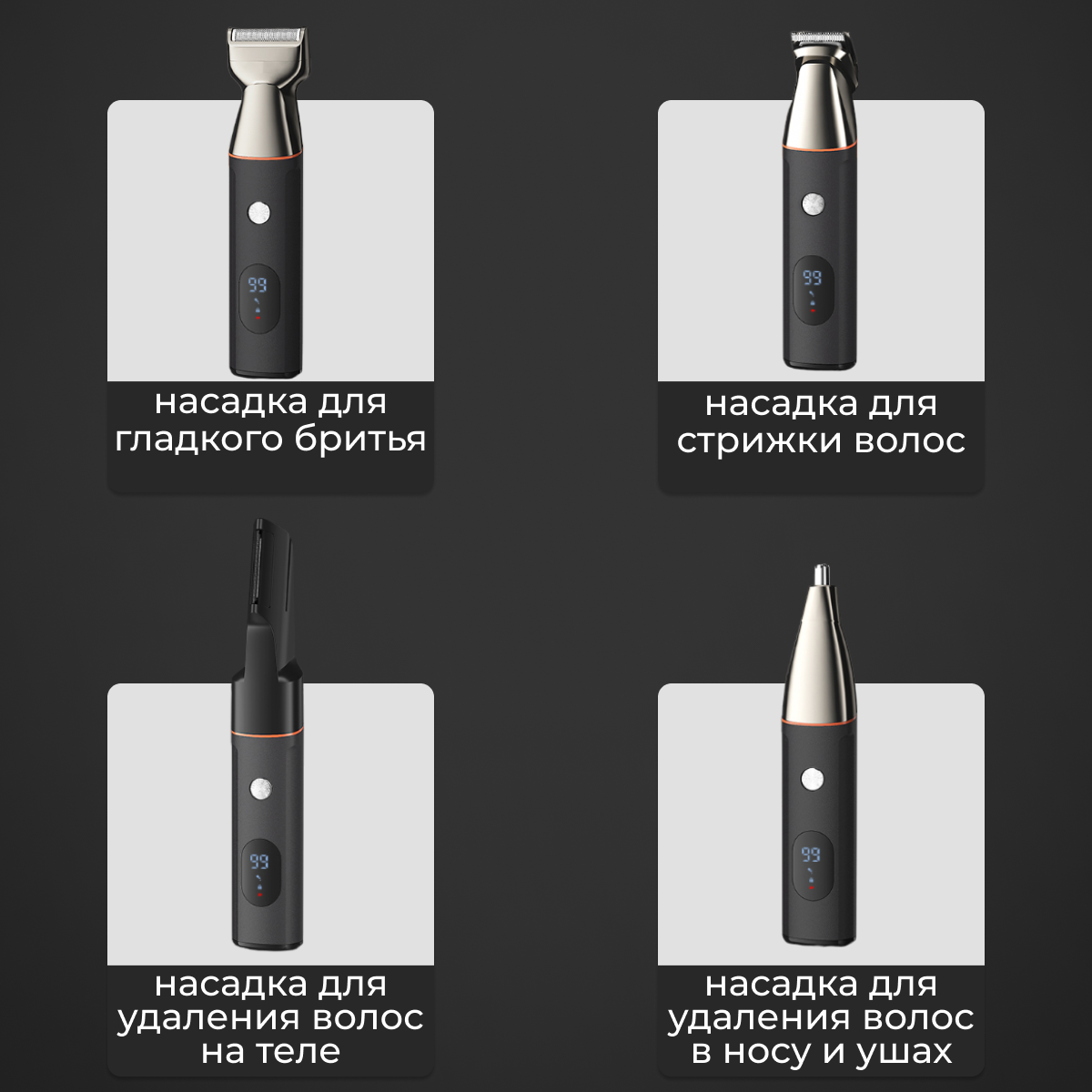 Машинка для стрижки волос 5 в 1, триммер для бороды, усов, носа, ушей и тела / станция в подарок интересное: