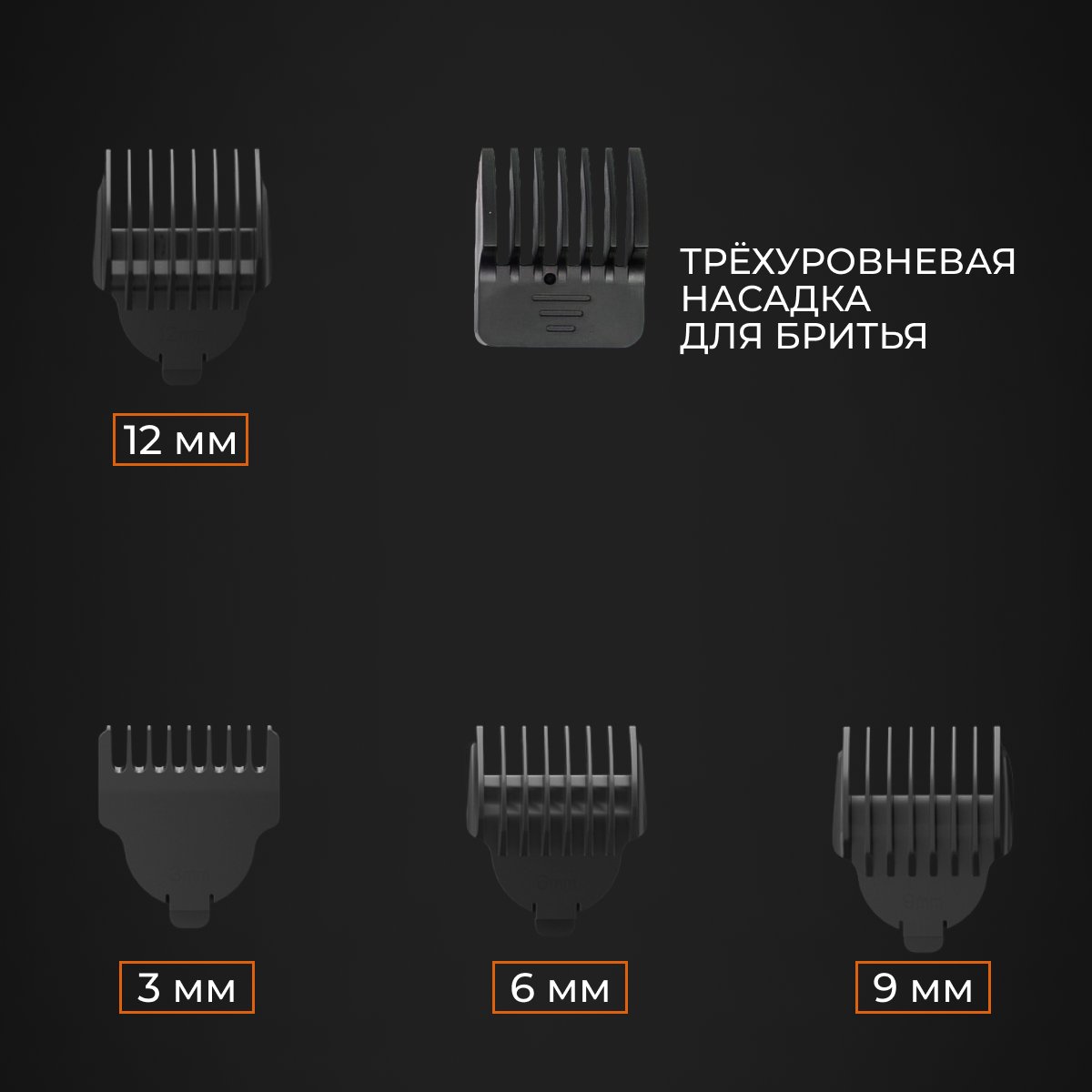Машинка для стрижки волос, триммер с 3 насадками Lettfort, черный