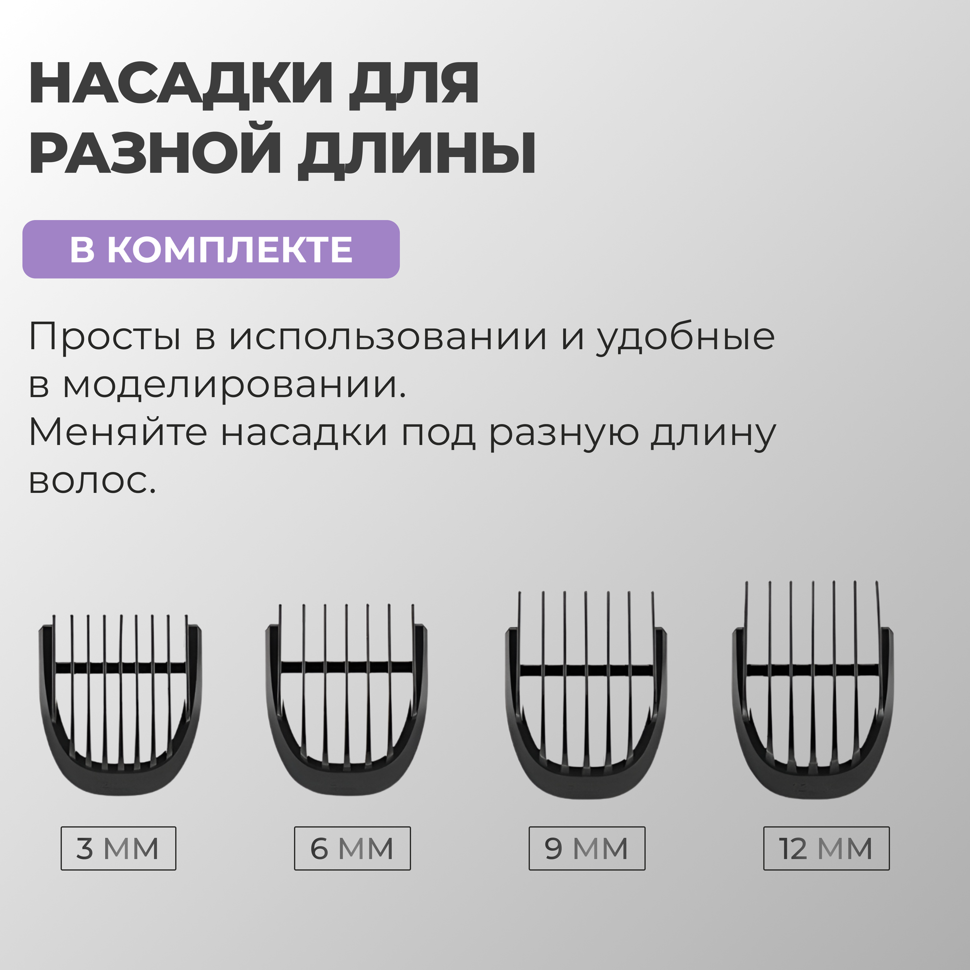 Машинка для стрижки волос, триммер с 3 насадками Lettfort, черный