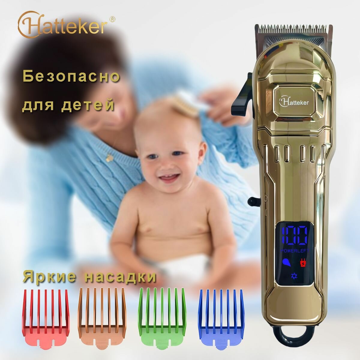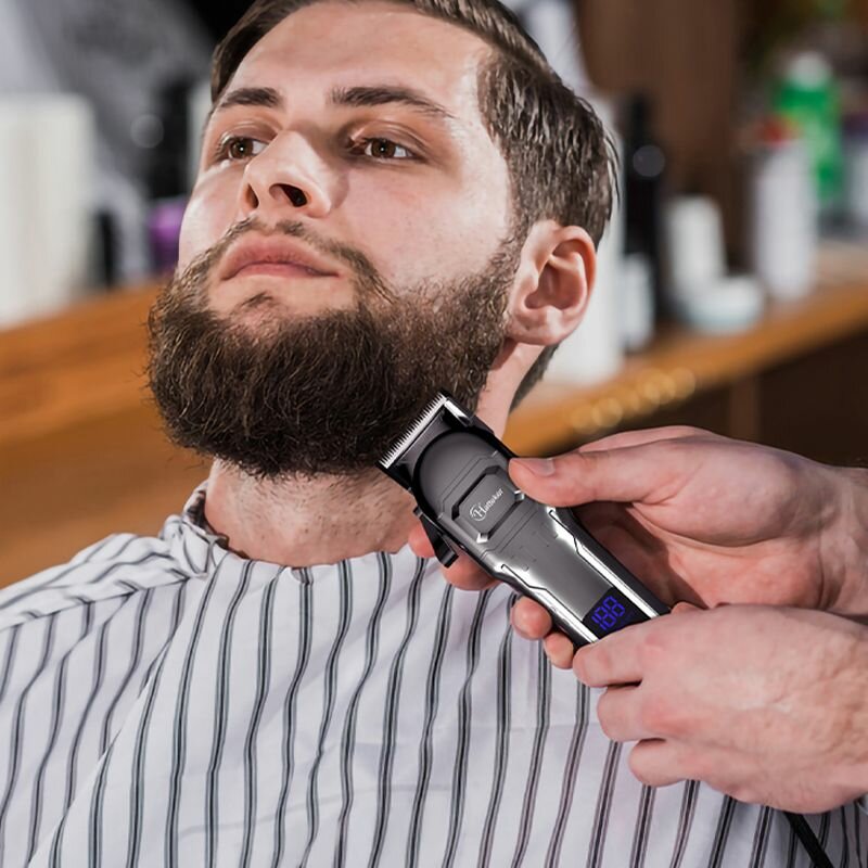 Машинка для Стрижки Волос Профессиональная HT-608 Беспроводная и Водонепроницаемая с Выдвижной Насадкой Триммер для Бороды