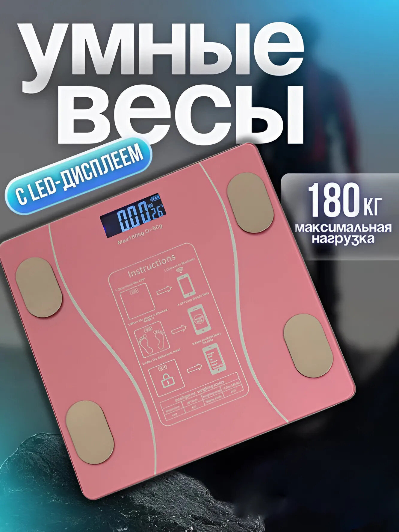 Умные весы напольные электронные с диагностикой параметров тела, 12 показателей, совместимы для IOS и Android, розовый интересное: