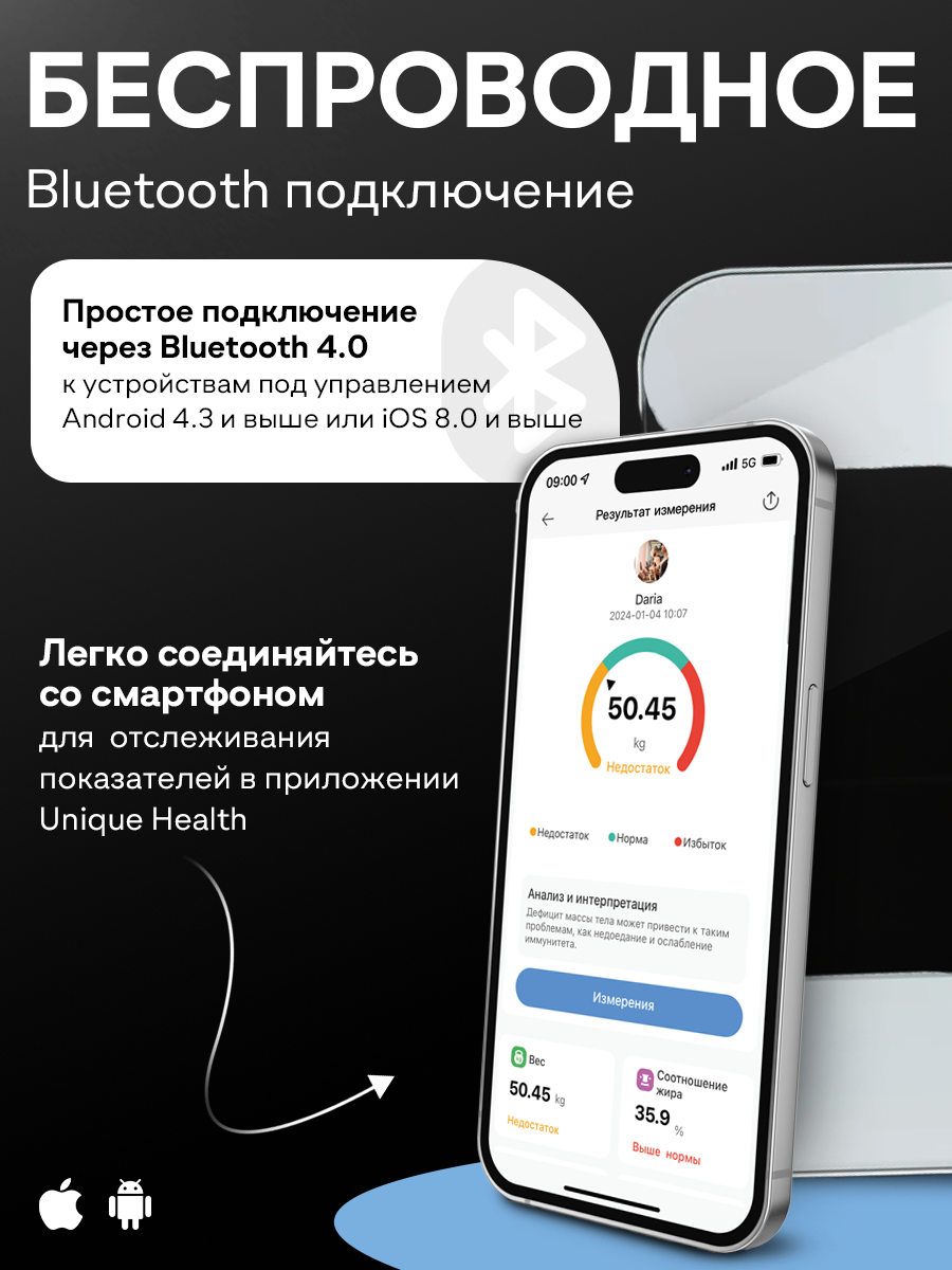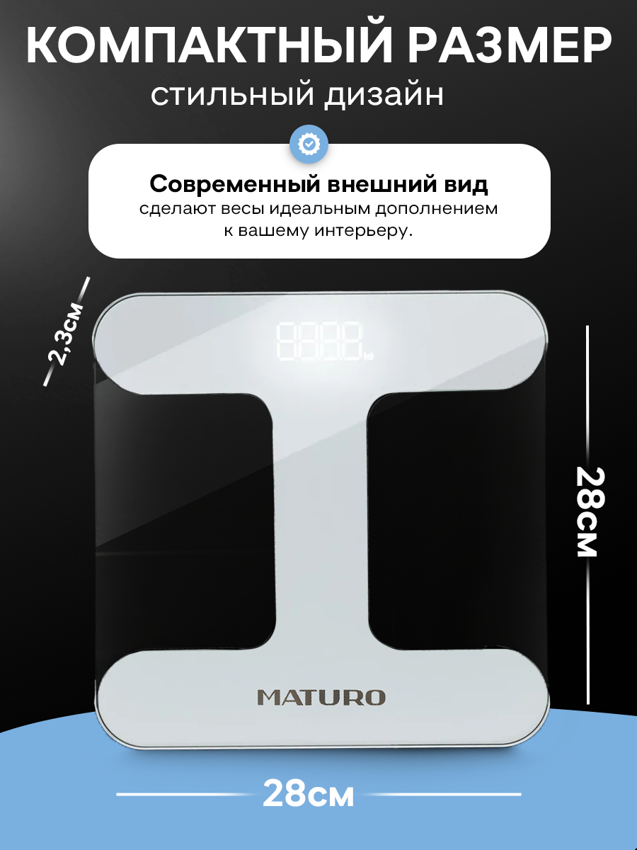 Умные весы Maturo SC-310 , с Bluetooth, для Android и iOS, синхронизируются со смартфоном, расчёт ИМТ интересное: