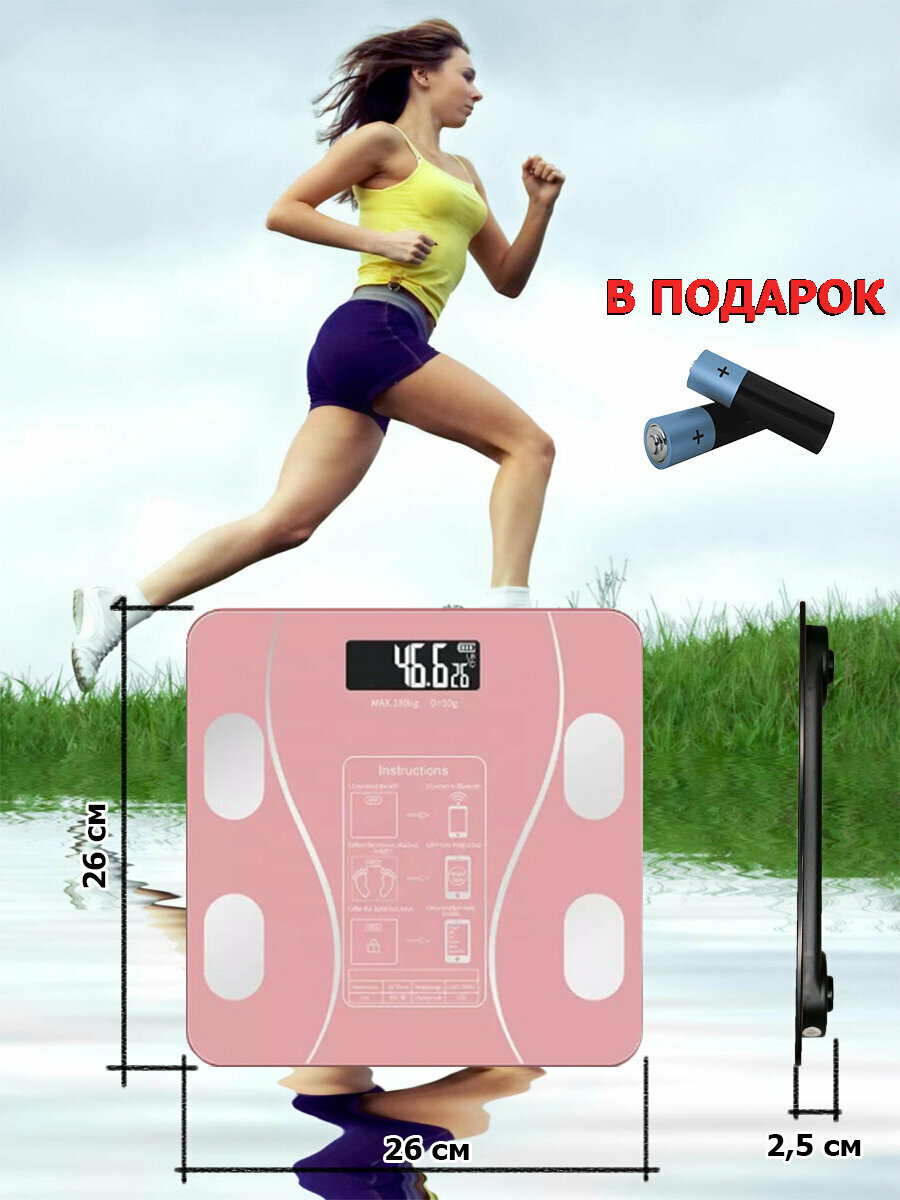 Умные электронные напольные весы блютуз розовые RINA TECHNICS интересное: