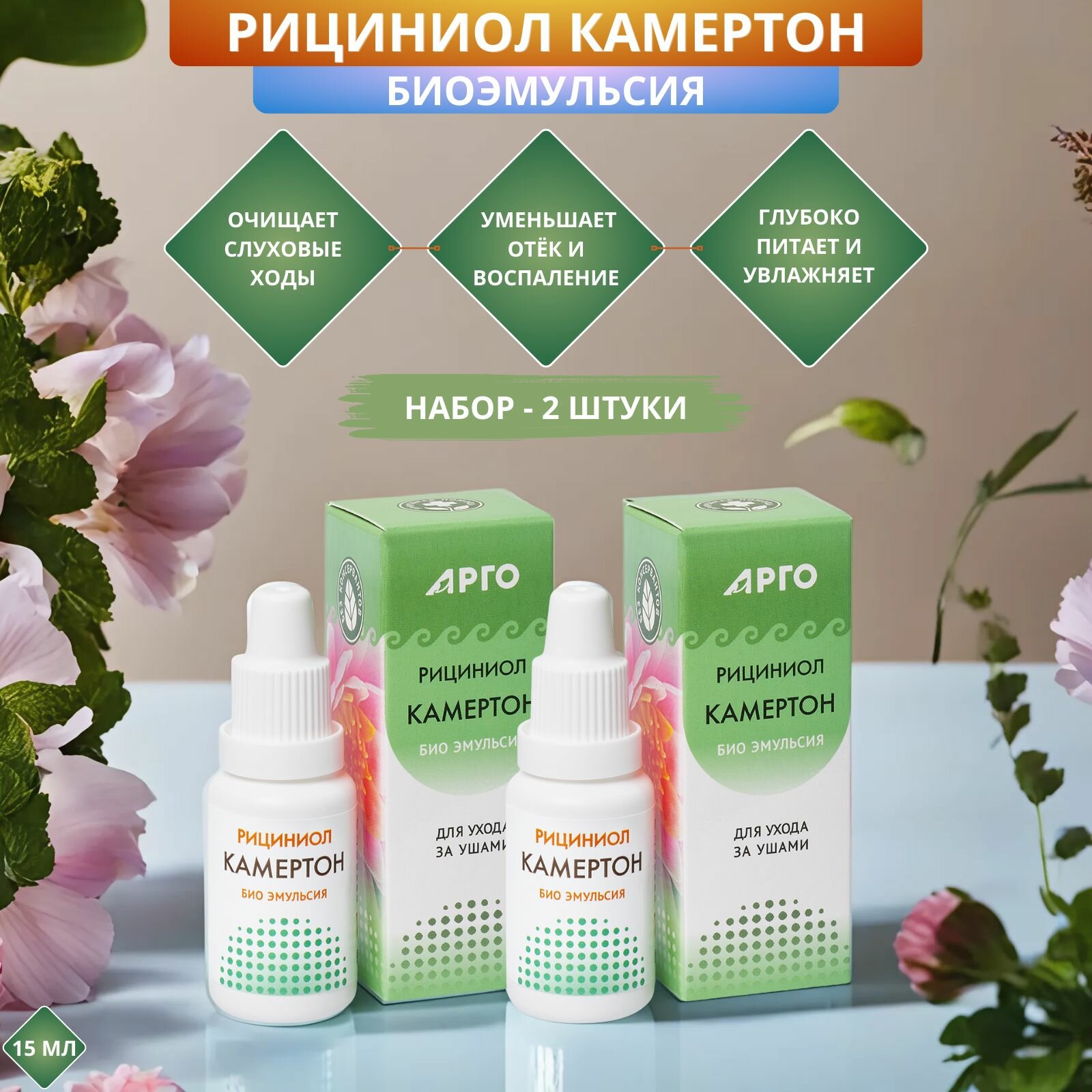 Эмульсия Рициниол Камертон для ухода за ушными раковинами и слуховыми ходами, 15 мл - набор 2 штуки интересное: