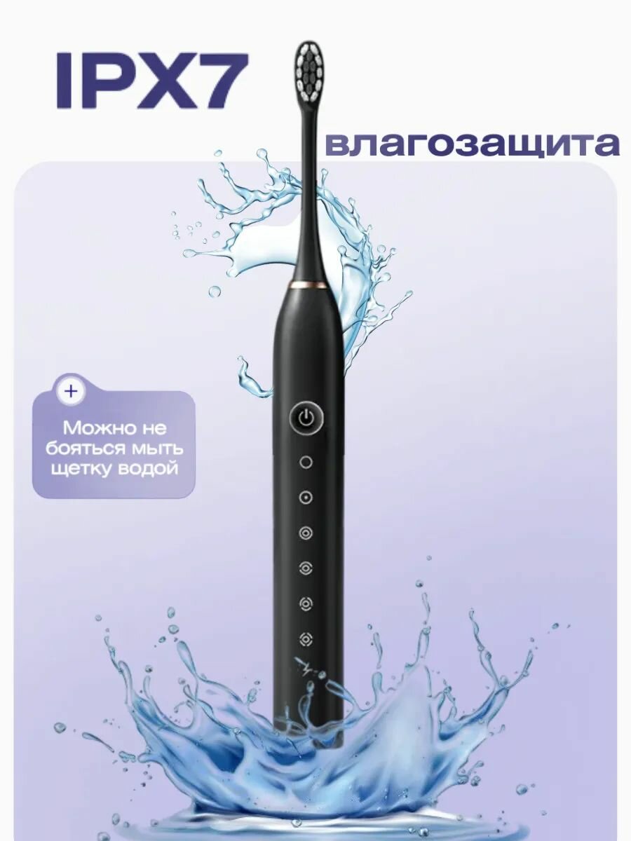 Купить Электрическая зубная щетка, ультразвуковая, 6 режимов, с набором из 4 насадок, черная