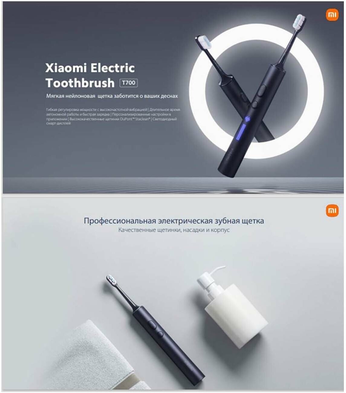 Электрическая зубная щетка XIAOMI MIJIA T700 Navy Blue, с датчиком нажима и таймером, 2 насадки интересное: