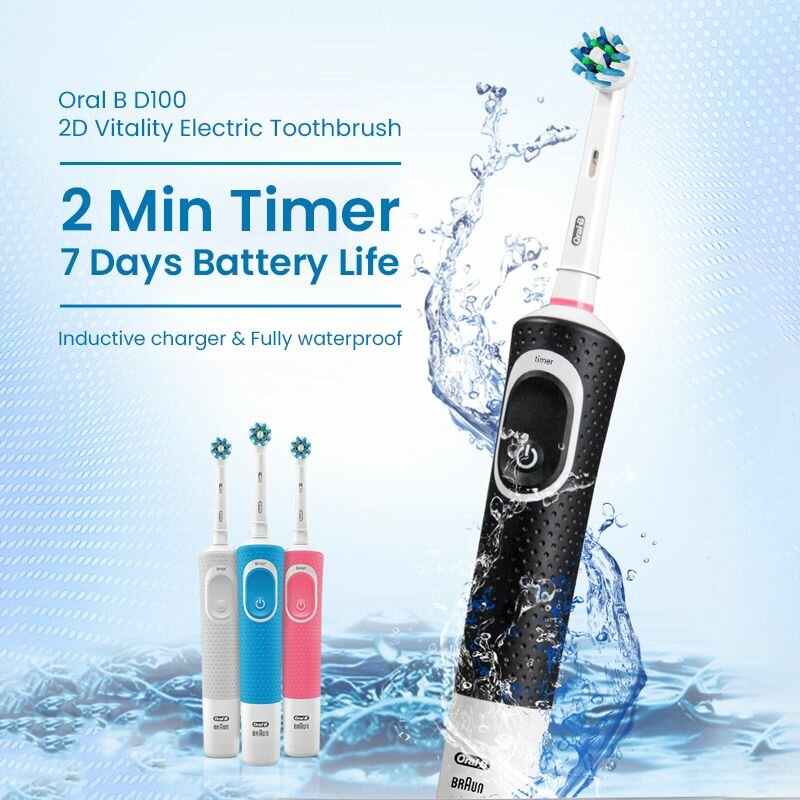 Купить Oral B Электрическая зубная щетка D100, Чёрный 220В индукционная зарядка 7600 вибраций