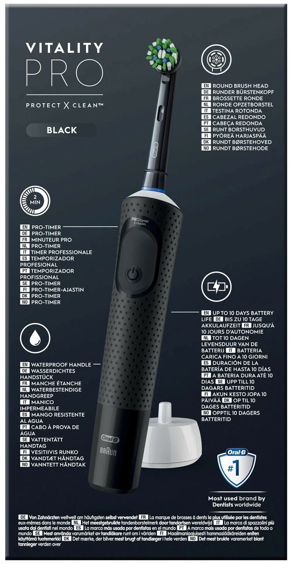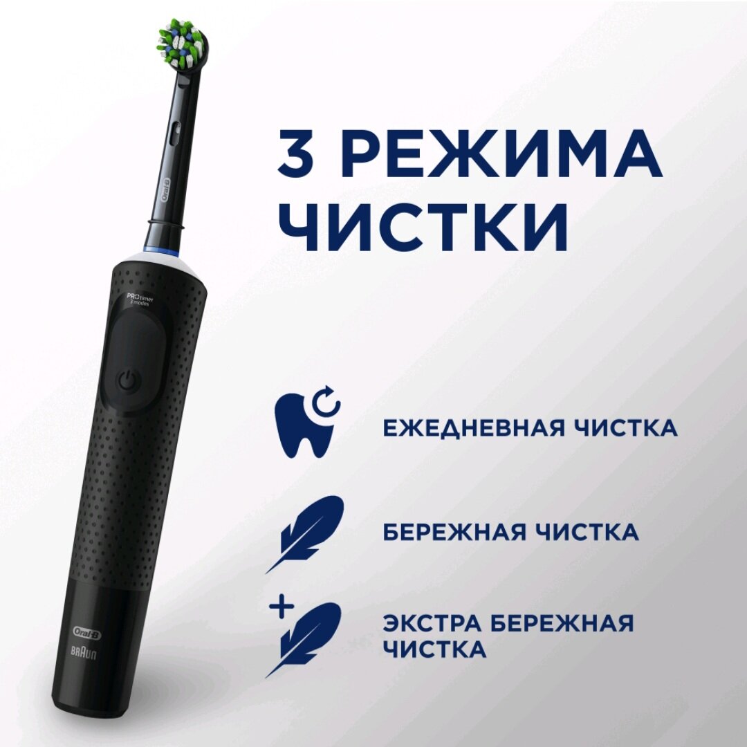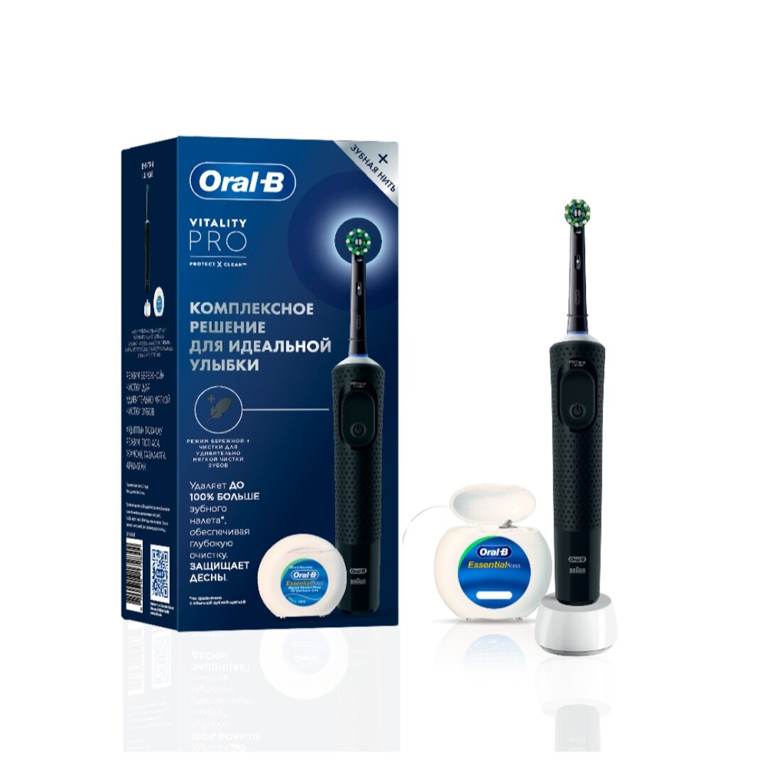 Электрическая зубная щётка Oral-B Vitality Pro для бережной чистки, с зубной нитью, Чёрная, 1 шт, Оригинальная интересное: