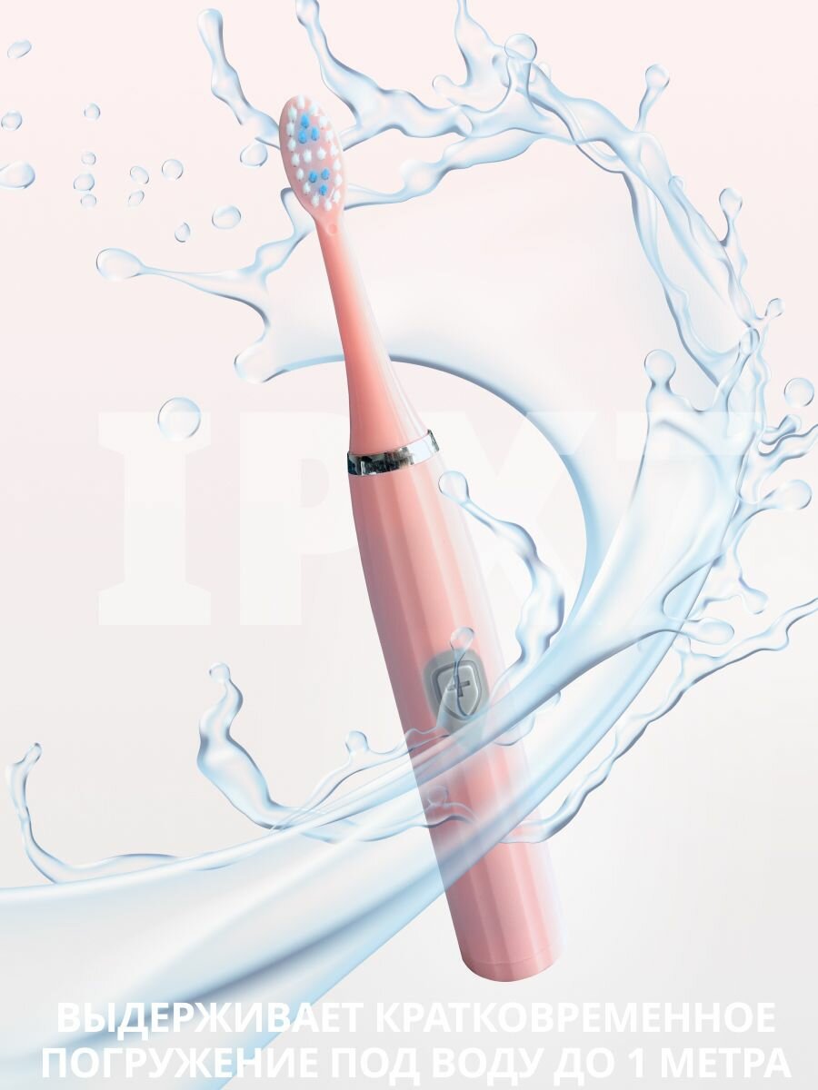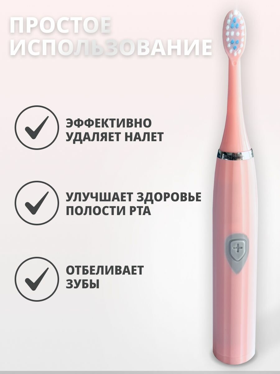 Электрическая зубная щетка с 3 насадками, розовая интересное: