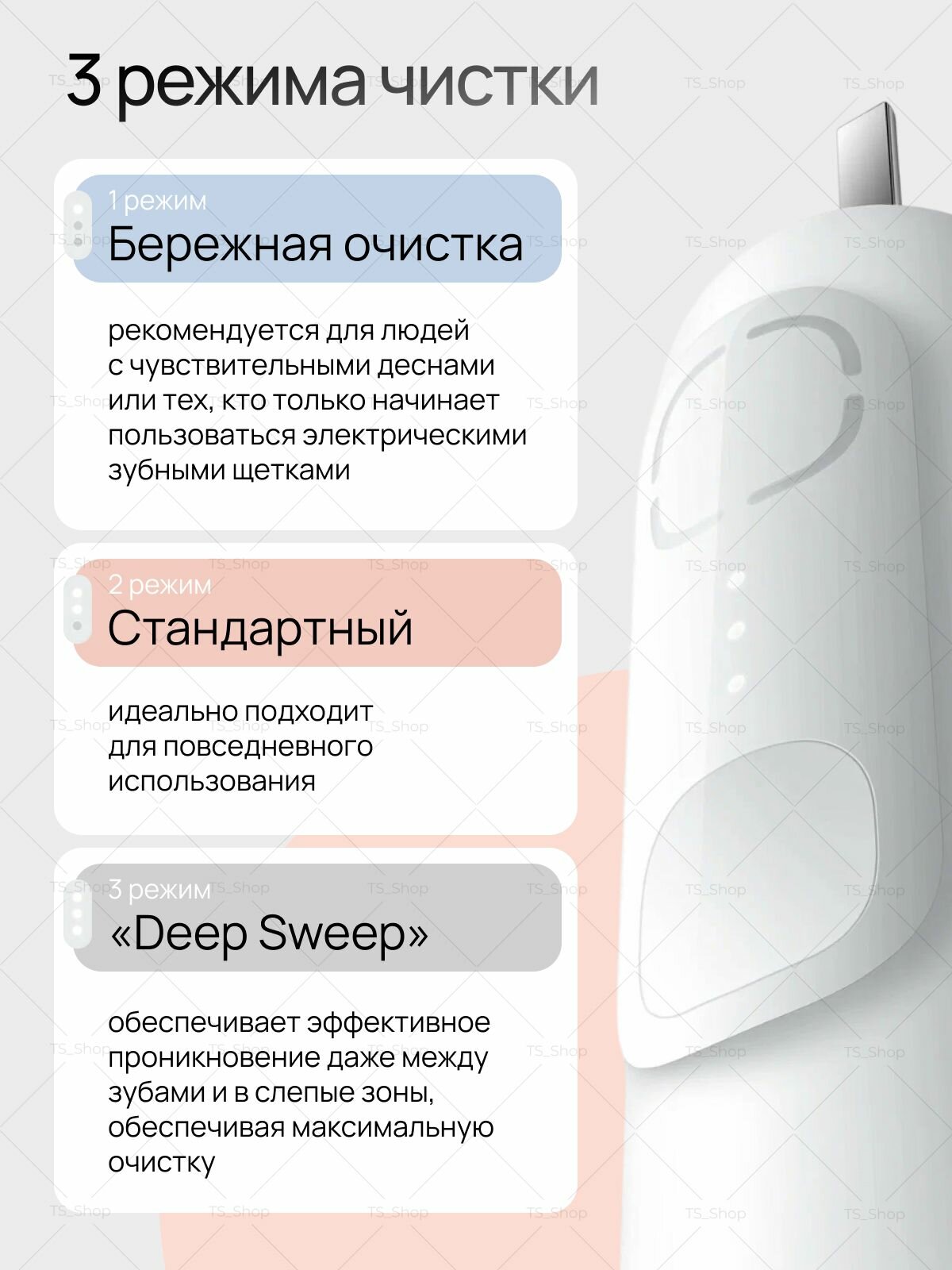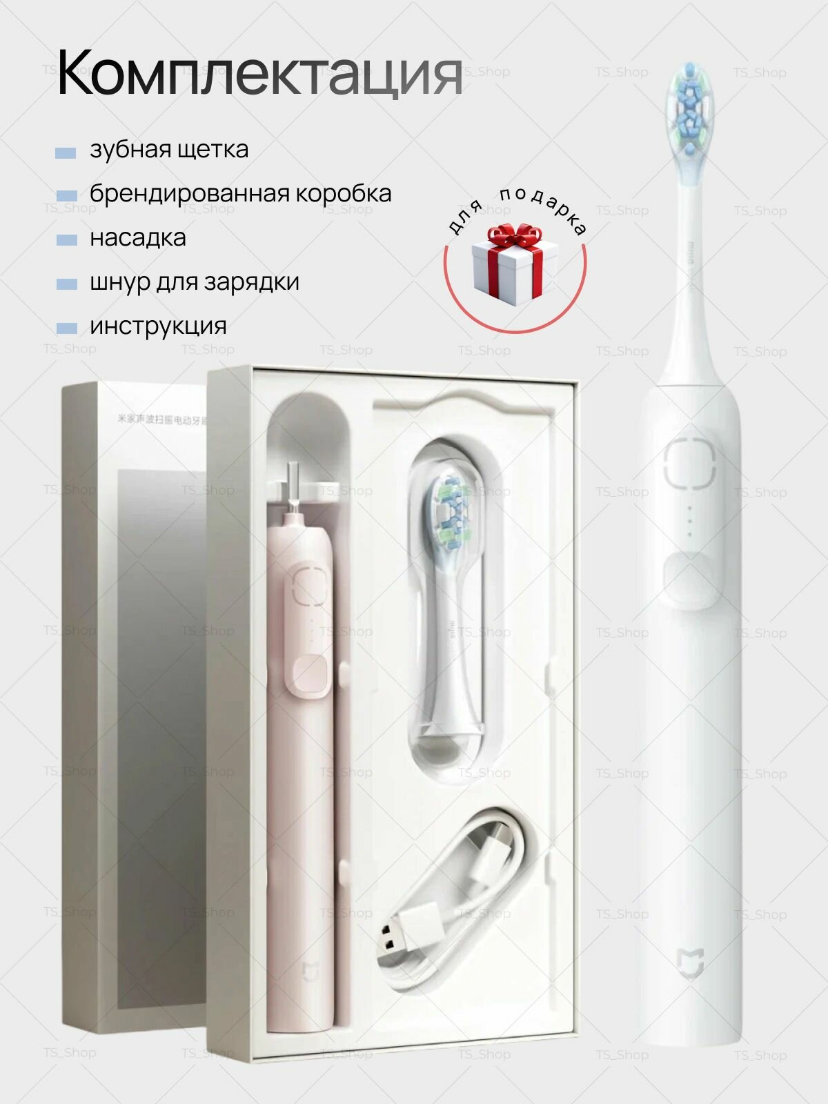 Электрическая зубная щетка Mijia T302, звуковая, 4 режима, LiIon, от аккумулятора, 150 г