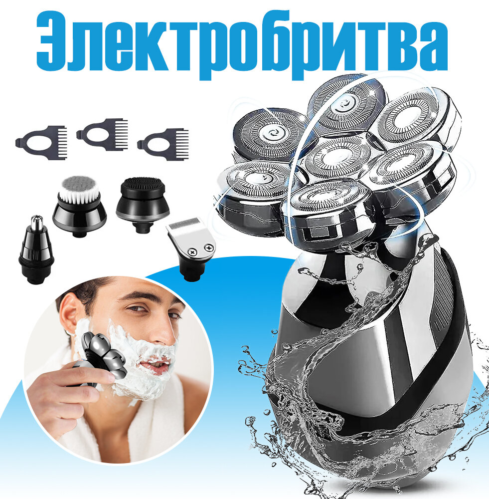 Электробритва мужская для сухого и влажного бритья,7 плавающими головками, бритва для мужчин, Серебряный интересное: