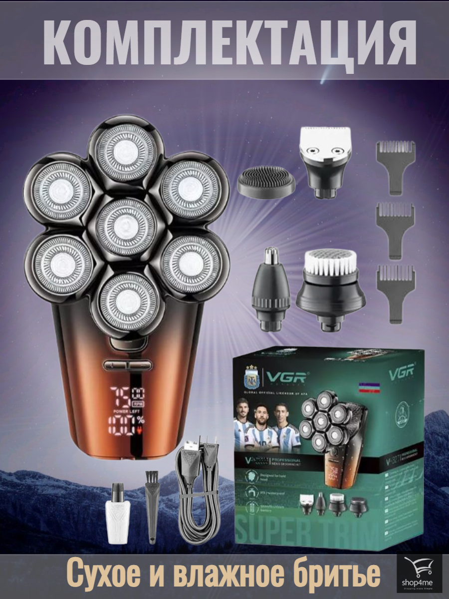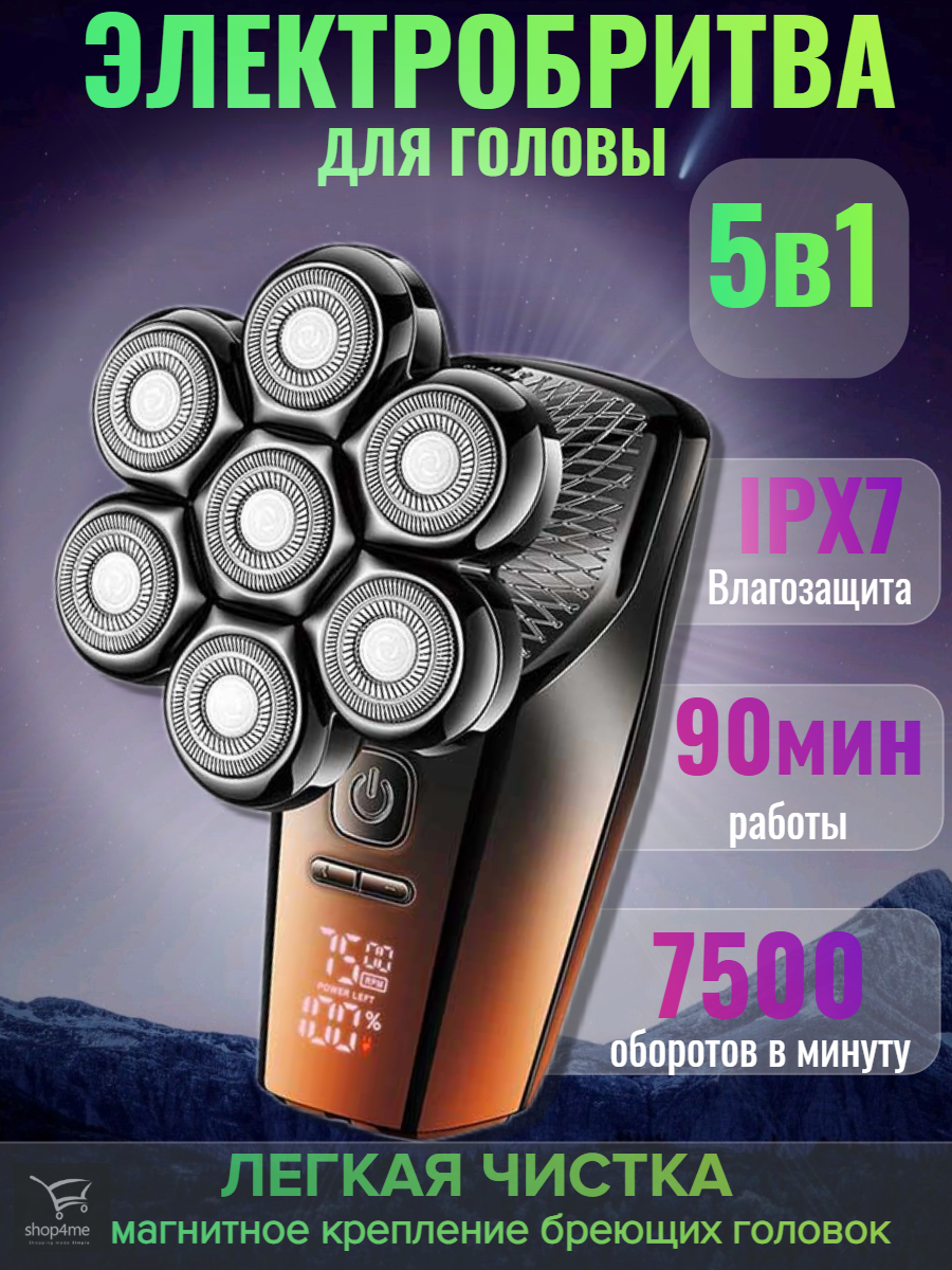 Электробритва для головы 5в1, 0327, влагостойкая бритва электрическая для мужчин, оригинал интересное: