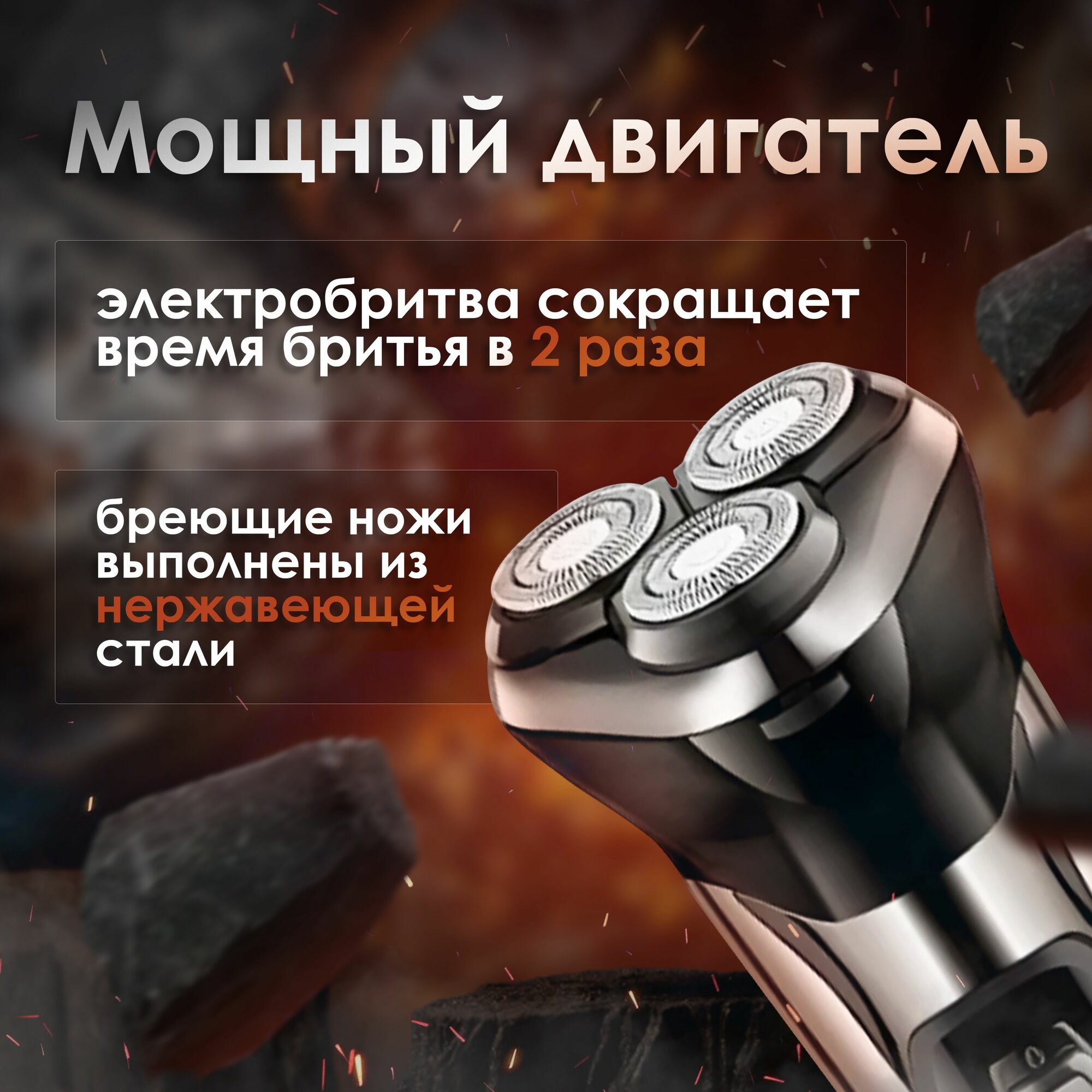 Электробритва мужская 3 в 1, роторная, плавающие головки, LiIon аккумулятор, серая интересное: