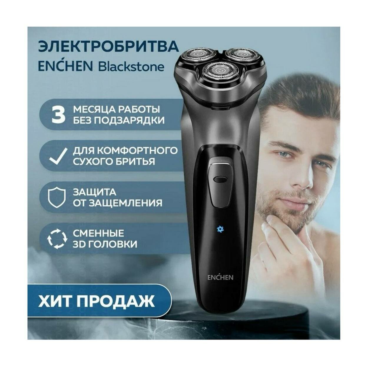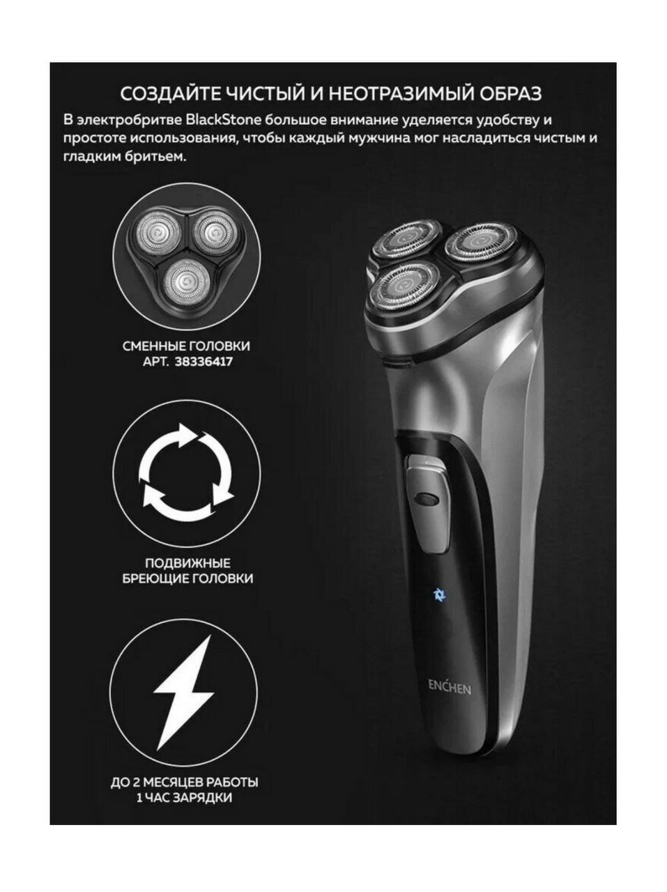 Электробритва Enchen BLACKSTONE, роторная, до 90 мин, 5Вт, Li-ion, 1ч зарядки интересное: