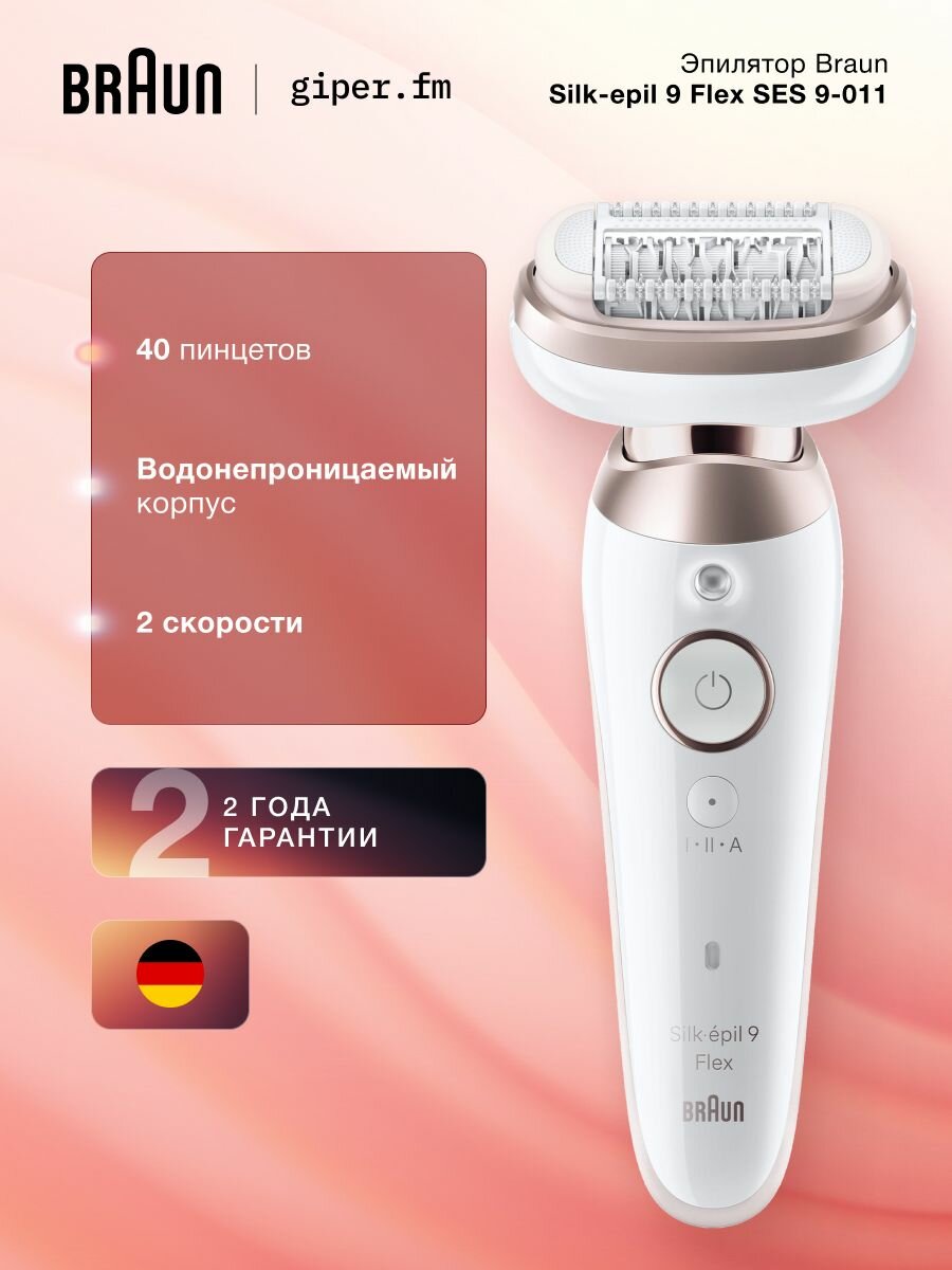 Эпилятор аккумуляторный женский Braun Silk-epil 9 Flex SES 9-011 2 скорости, водонепроницаемый, белый золотой интересное: