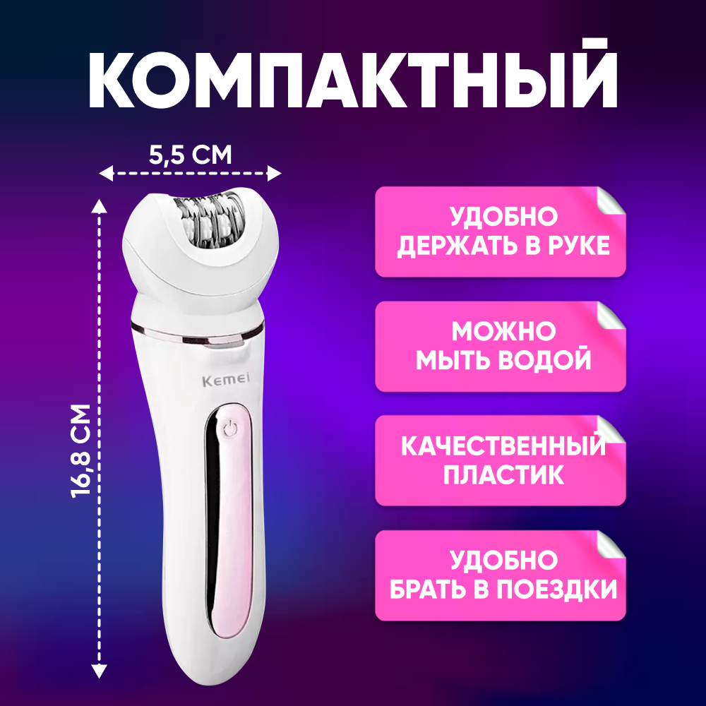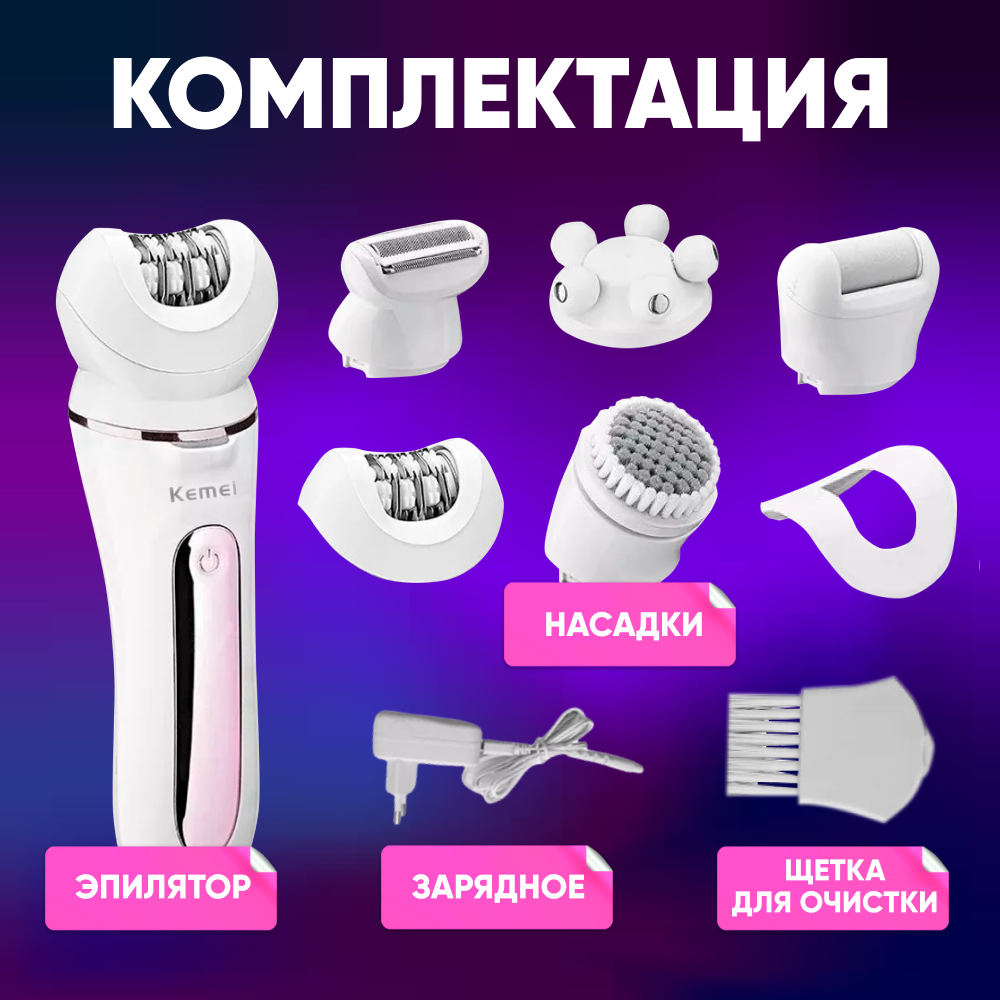 Kemei KM-7936 女士无绳脱毛器 5 合 1 白色 / 电动脱毛器, 带附件脱毛器, 脚跟锉, 面部去角质刷 / 身体护理电动剃须刀 интересное: