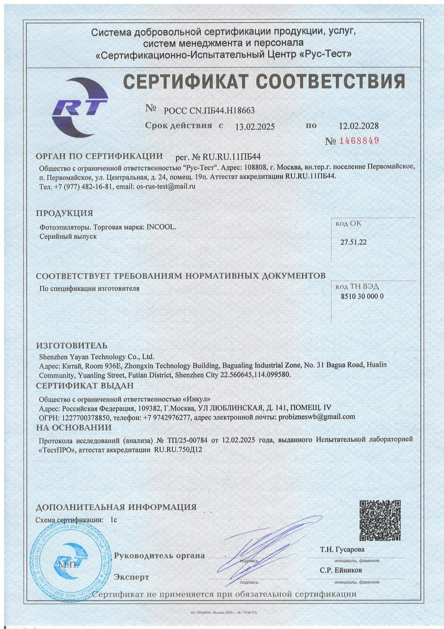 Фотоэпилятор INCOOL для домашнего использования с функцией охлаждения для комфортного удаления волос, черный