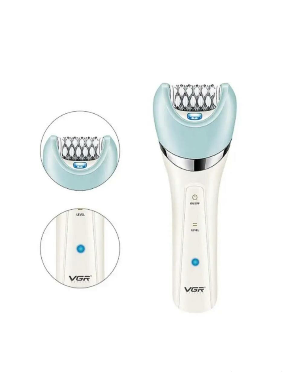 Эпилятор VGR V-703, 5 в 1, массажер, пиллинг, насадка для бикини и лица, голубой, белый интересное: