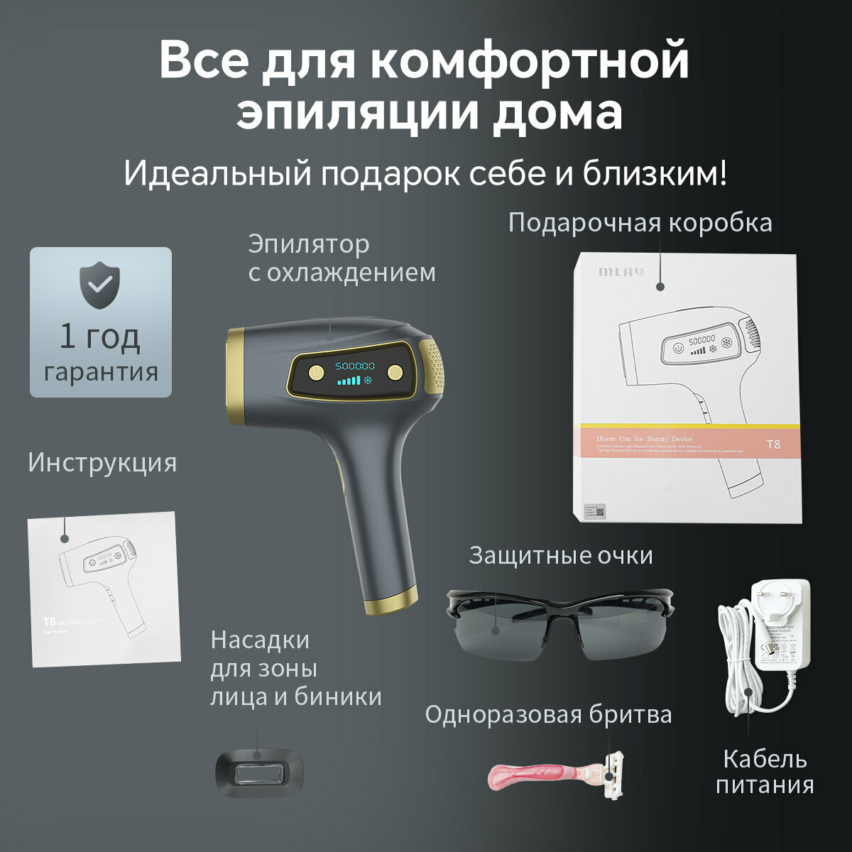 Фотоэпилятор лазерный IPL для тела Mlay ,5 скоростей регулировки с функцией охлаждения,500000 вспышек интересное: