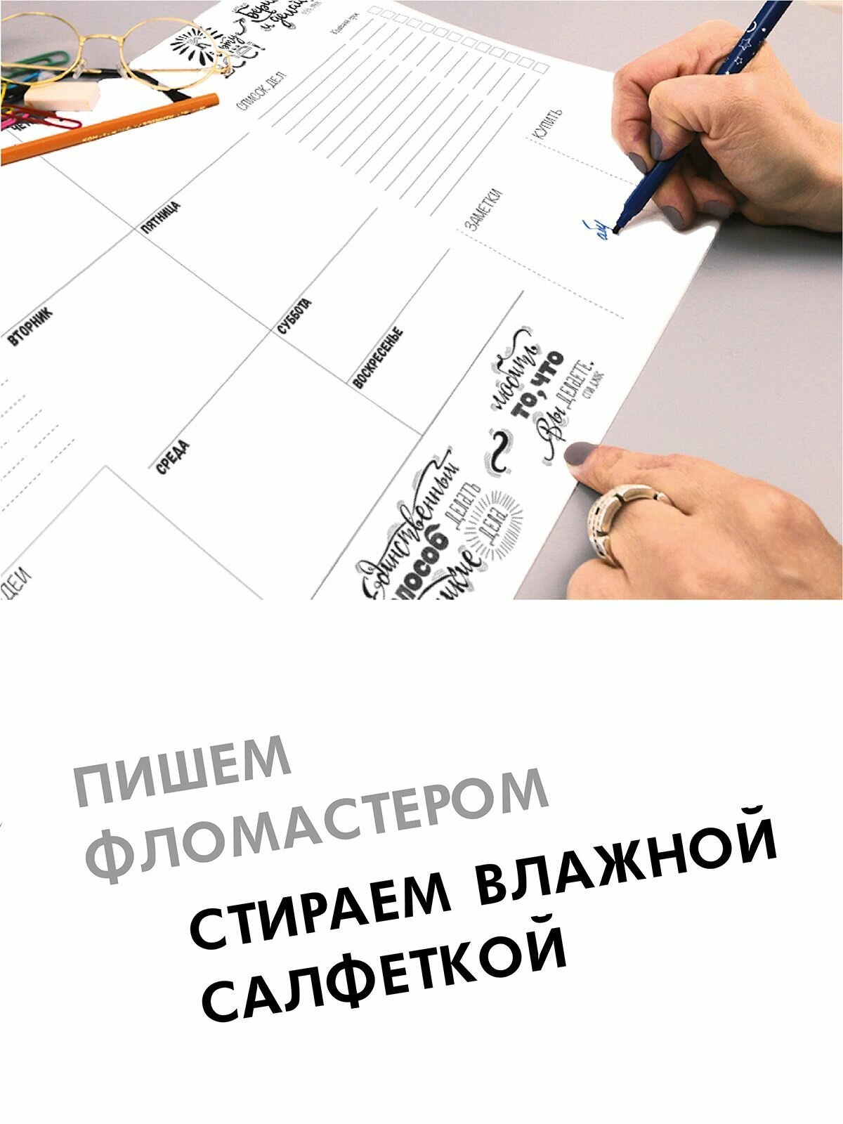 Ежедневник. Планер многоразовый, настольный. Защитный коврик на стол. интересное: