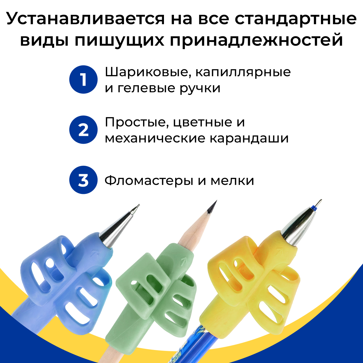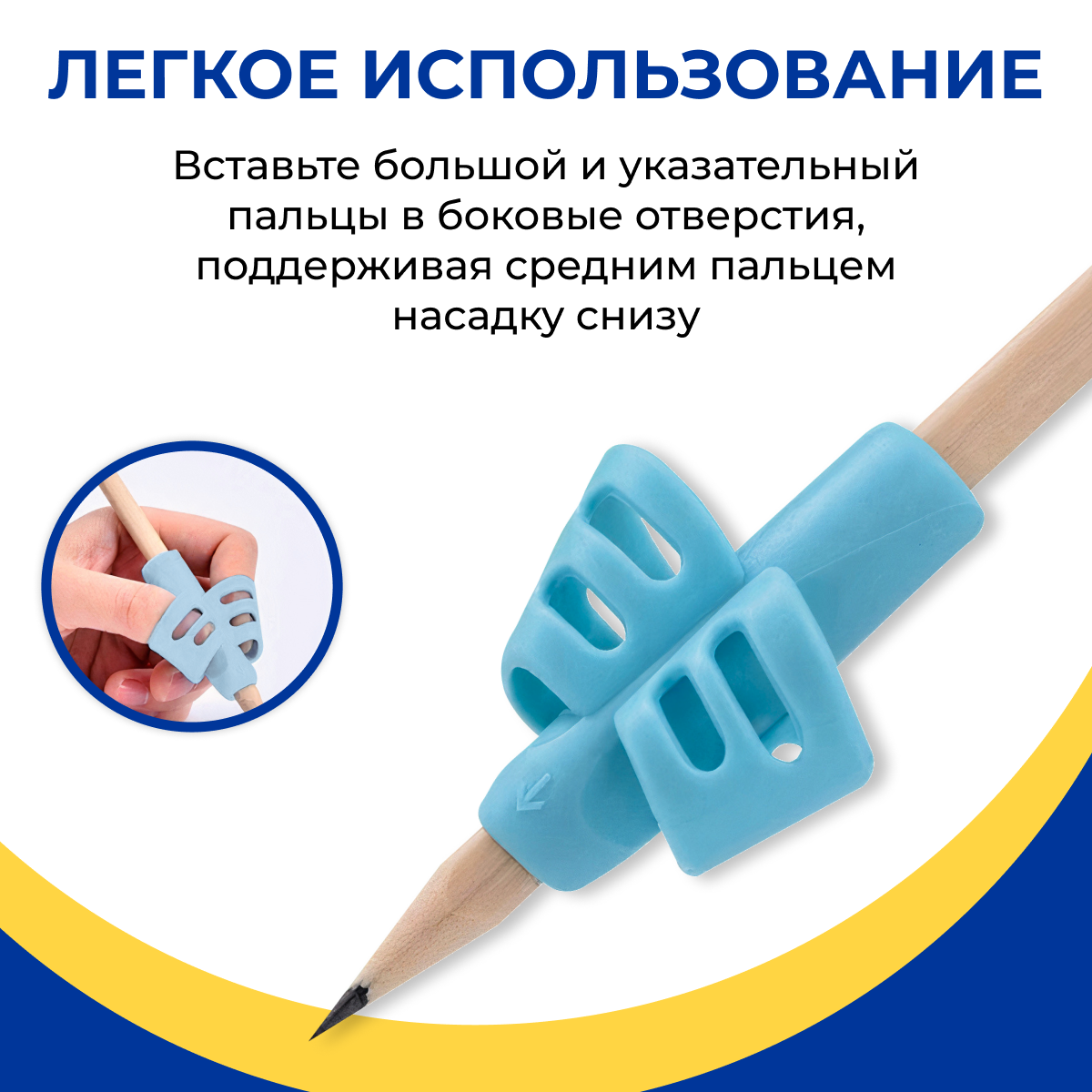 Тренажер для постановки письма / Насадка на ручку для исправления почерка / Силиконовый держатель для улучшения написания на левшу и правшу / Синий