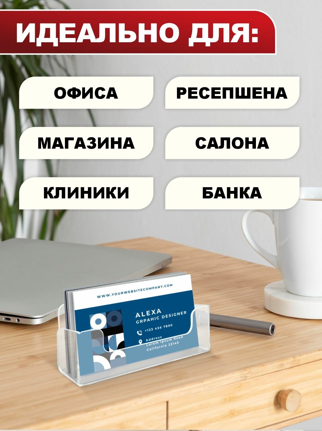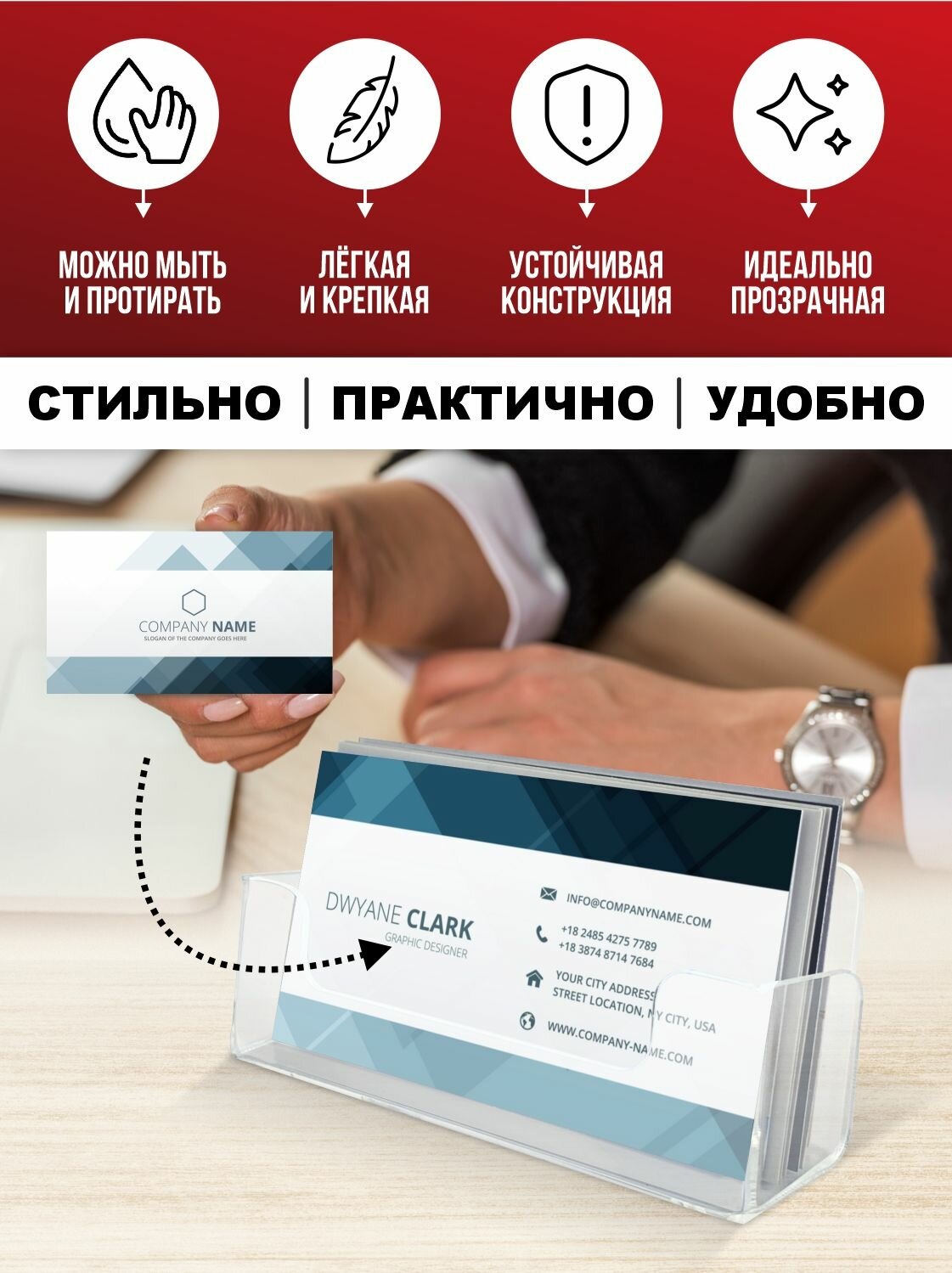 СохранитьВизитница / Подставка для визиток настольная, 100х40х25 мм, прозрачный пластик 1,5 мм, 1 шт, Velar интересное: