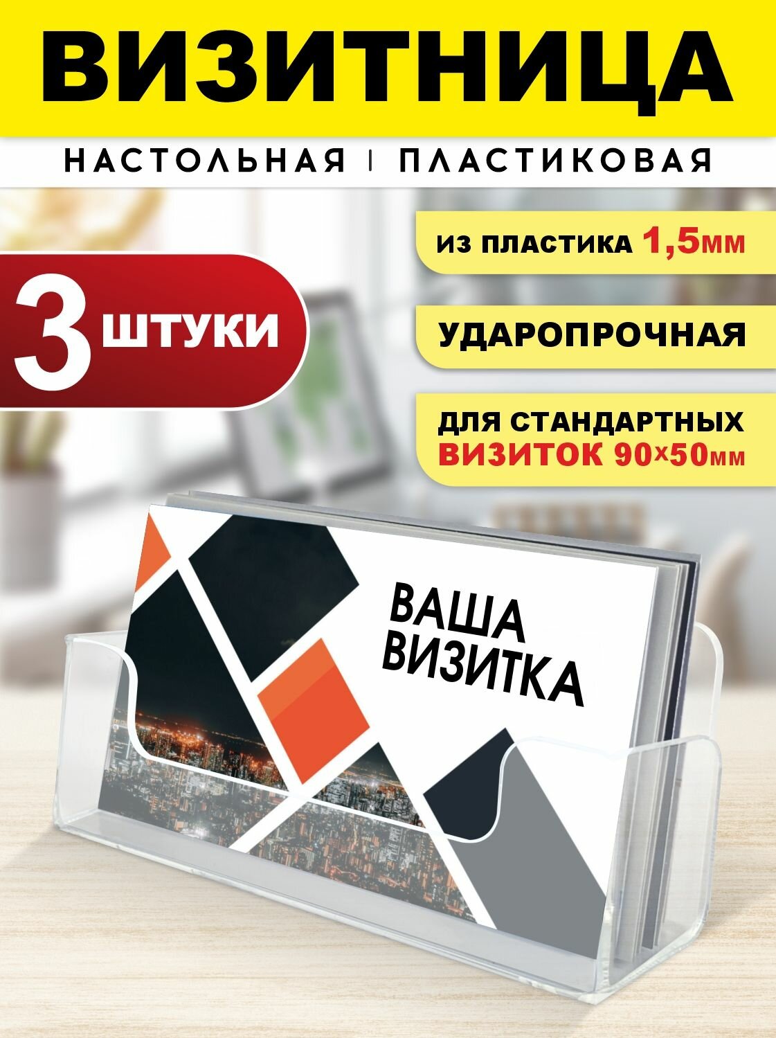 СохранитьВизитница / Подставка для визиток настольная, 100х40х25 мм, прозрачный пластик 1,5 мм, 3 шт, Velar интересное: