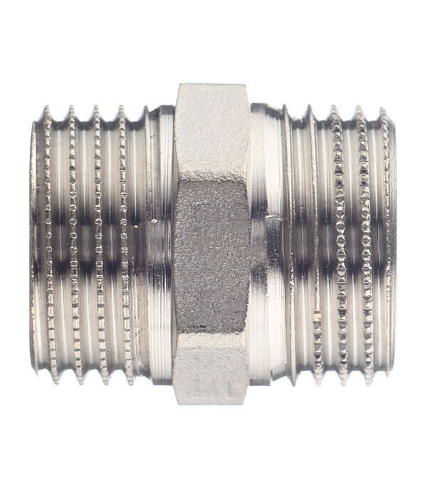 Ниппель латунный резьбовой равнопроходный STOUT - 1/2" (никелированный)