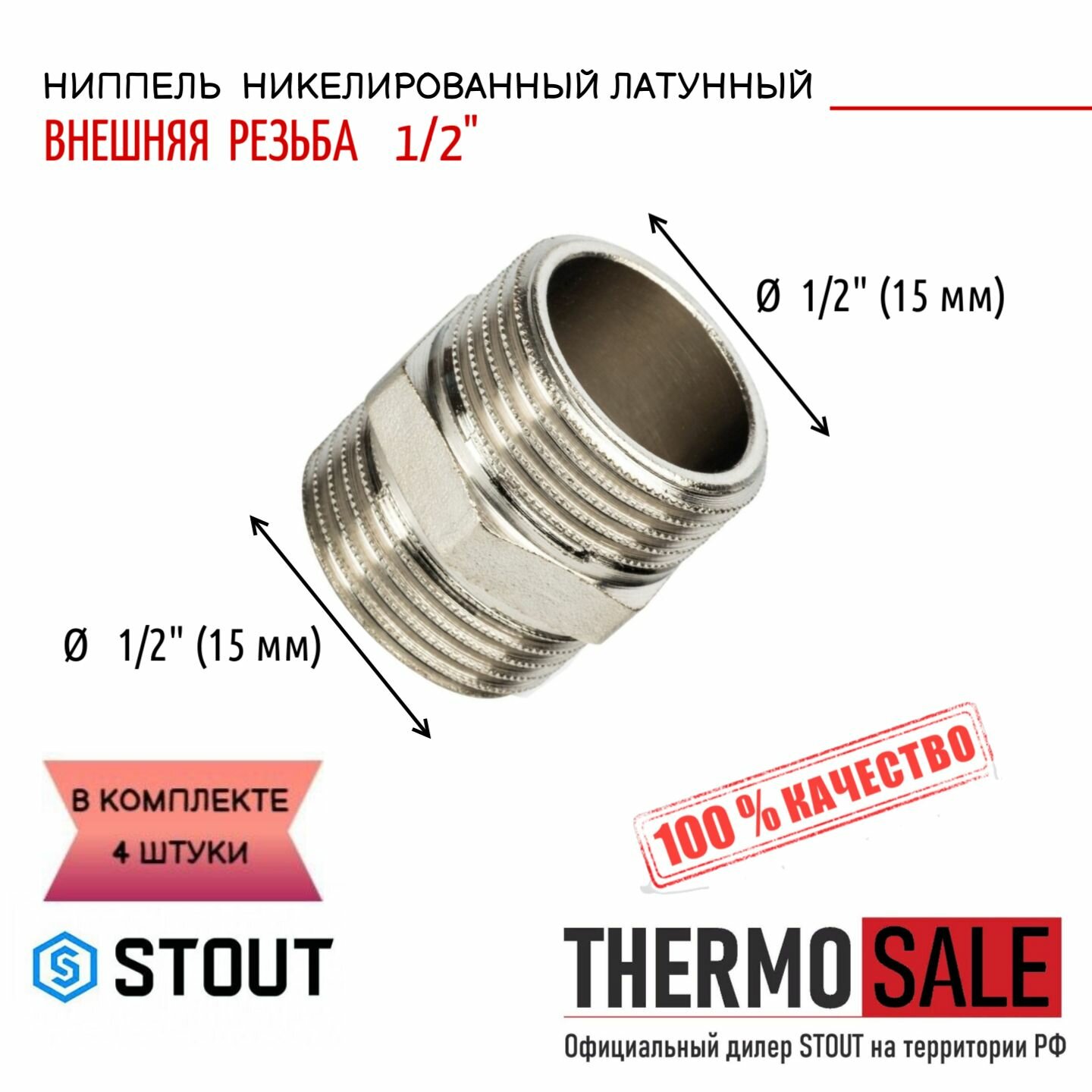 Ниппель Stout 1/2 наружная резьба никелированная латунь SFT-0004-001212