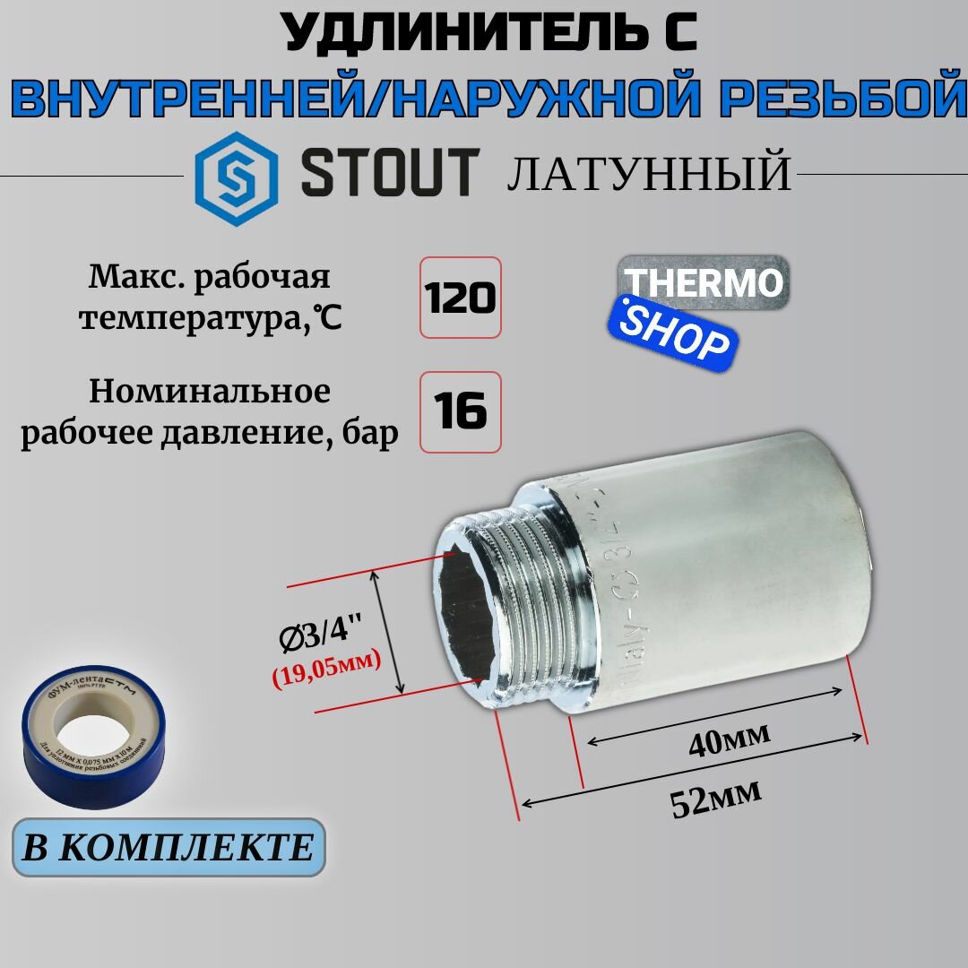 Удлинитель Stout (SFT-0002-003440) 40 мм х 3/4 ВР(г) х 3/4 НР(ш) латунный