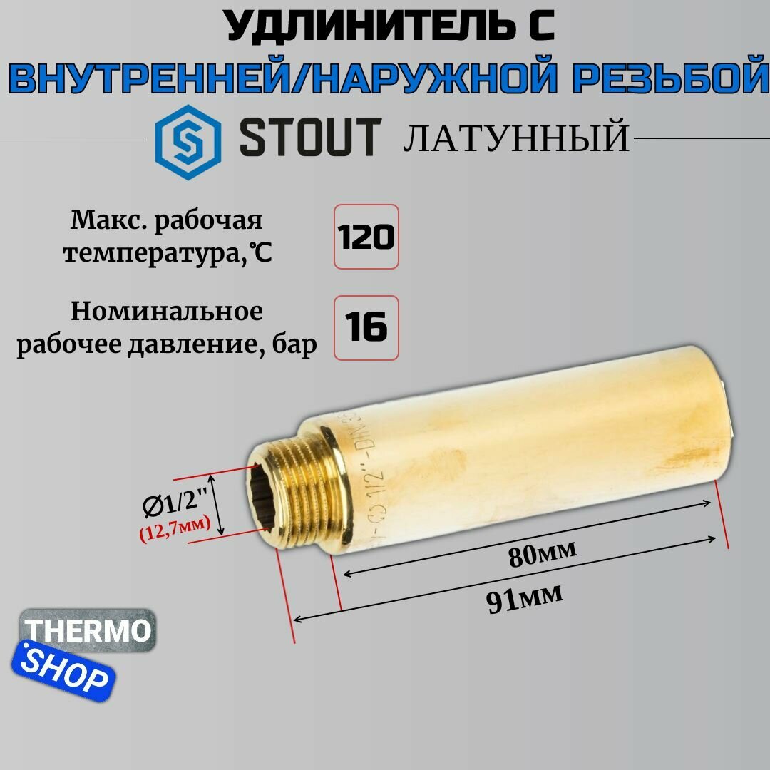 Удлинитель STOUT SFT-0001-001280 В-Н 1/2"Х80, латунь
