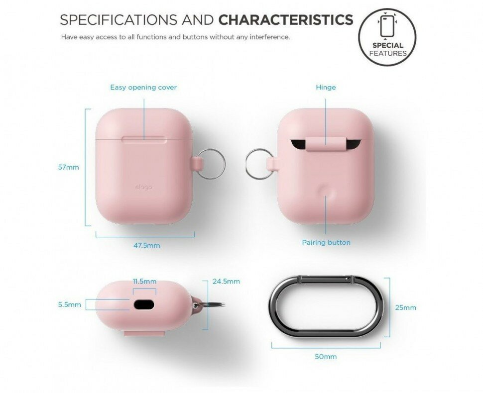 Чехол с карабином Elago AirPods Hang Сase для AirPods, цвет Розовый (EAPSC-HANG-PK)