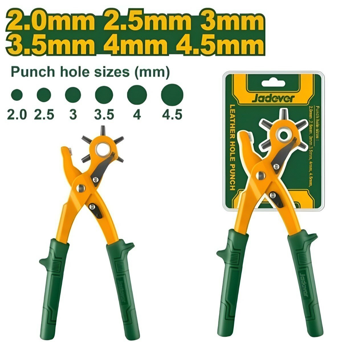 Купить Дырокол для кожи и ремня JADVER пробойник на 1 отверстие, размеры 2-4.5 мм, 6 диаметров