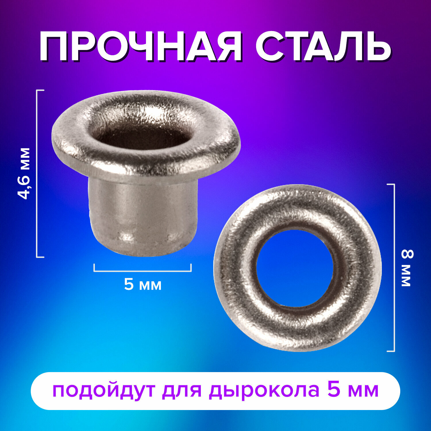 Люверсы серебристые комплект 250 шт, внутренний диаметр 4,8 мм, длина 4,6 мм, BRAUBERG, 272765 интересное: